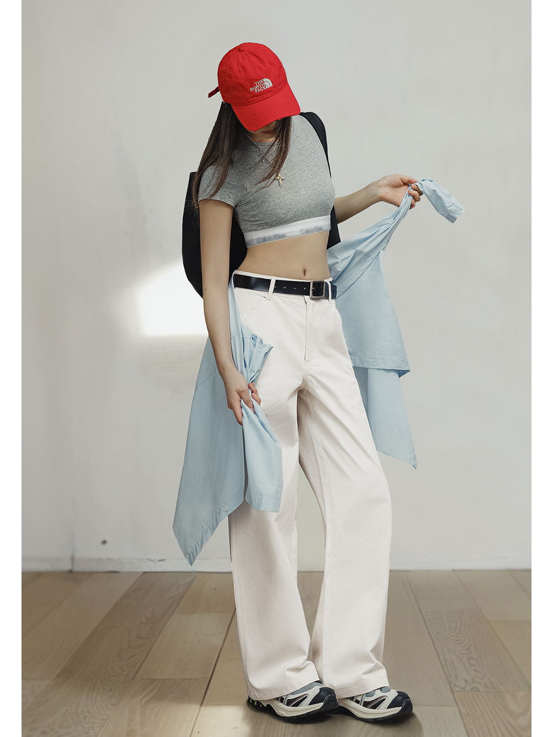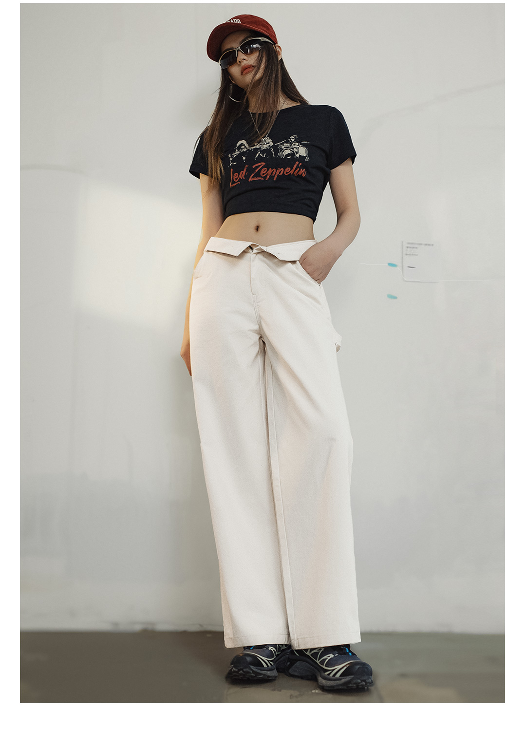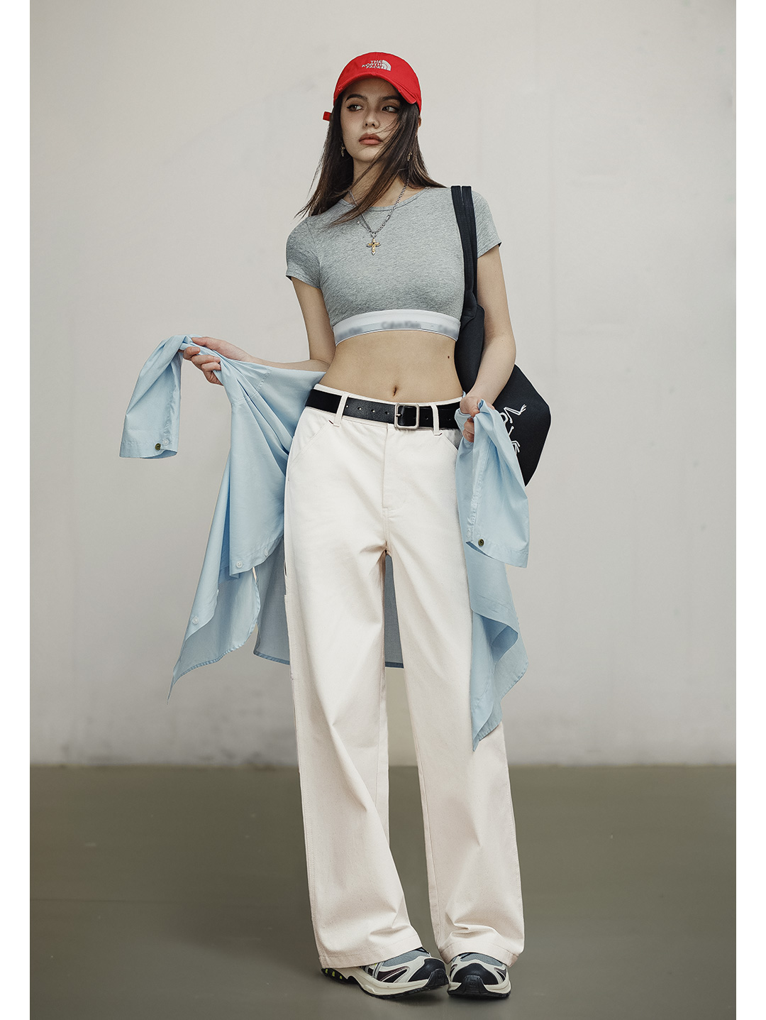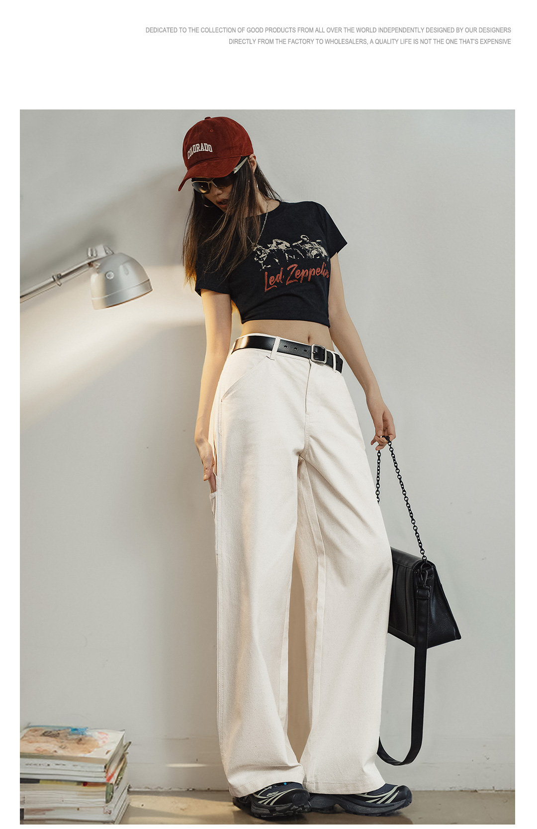 马登美式复古棉籽壳白色直筒裤百搭伐木工休闲裤原胚色工装裤女秋