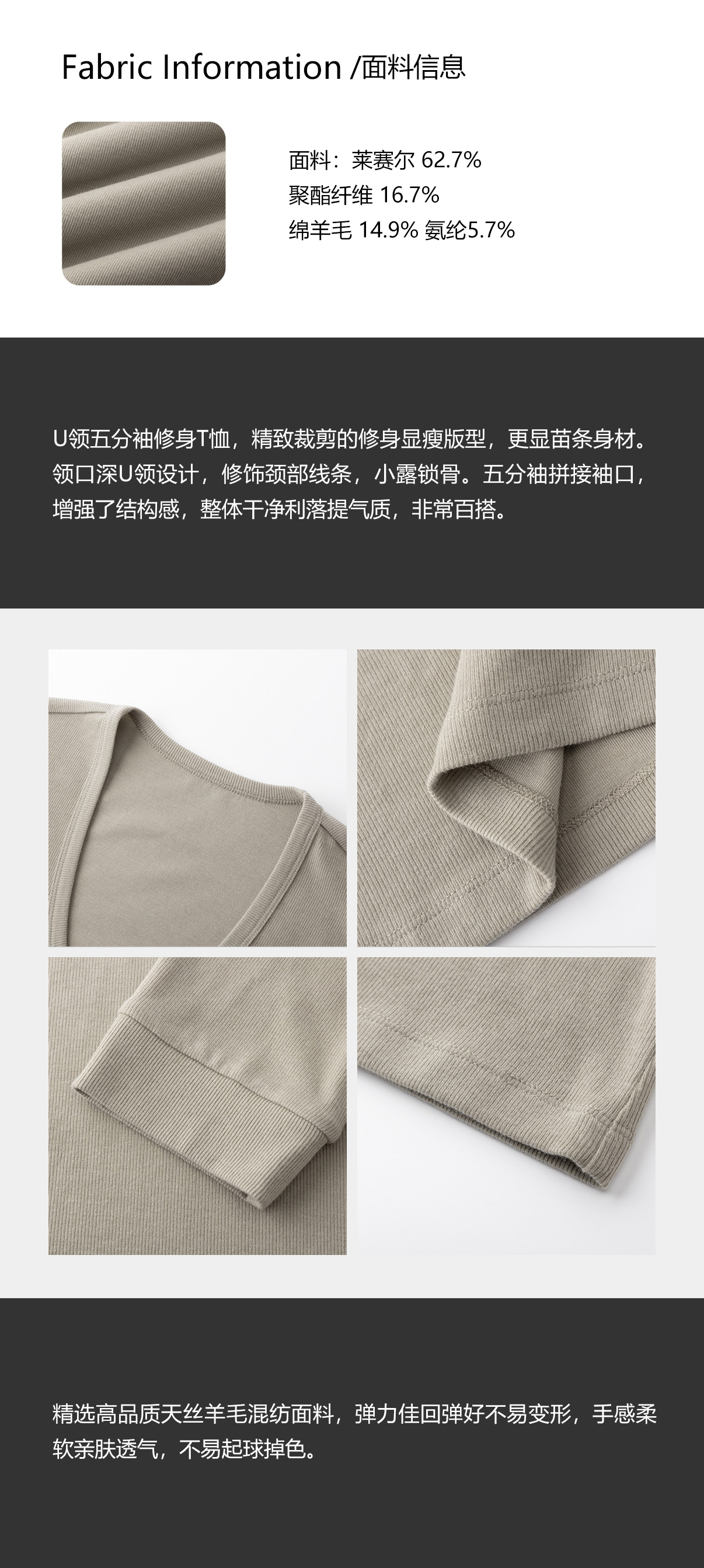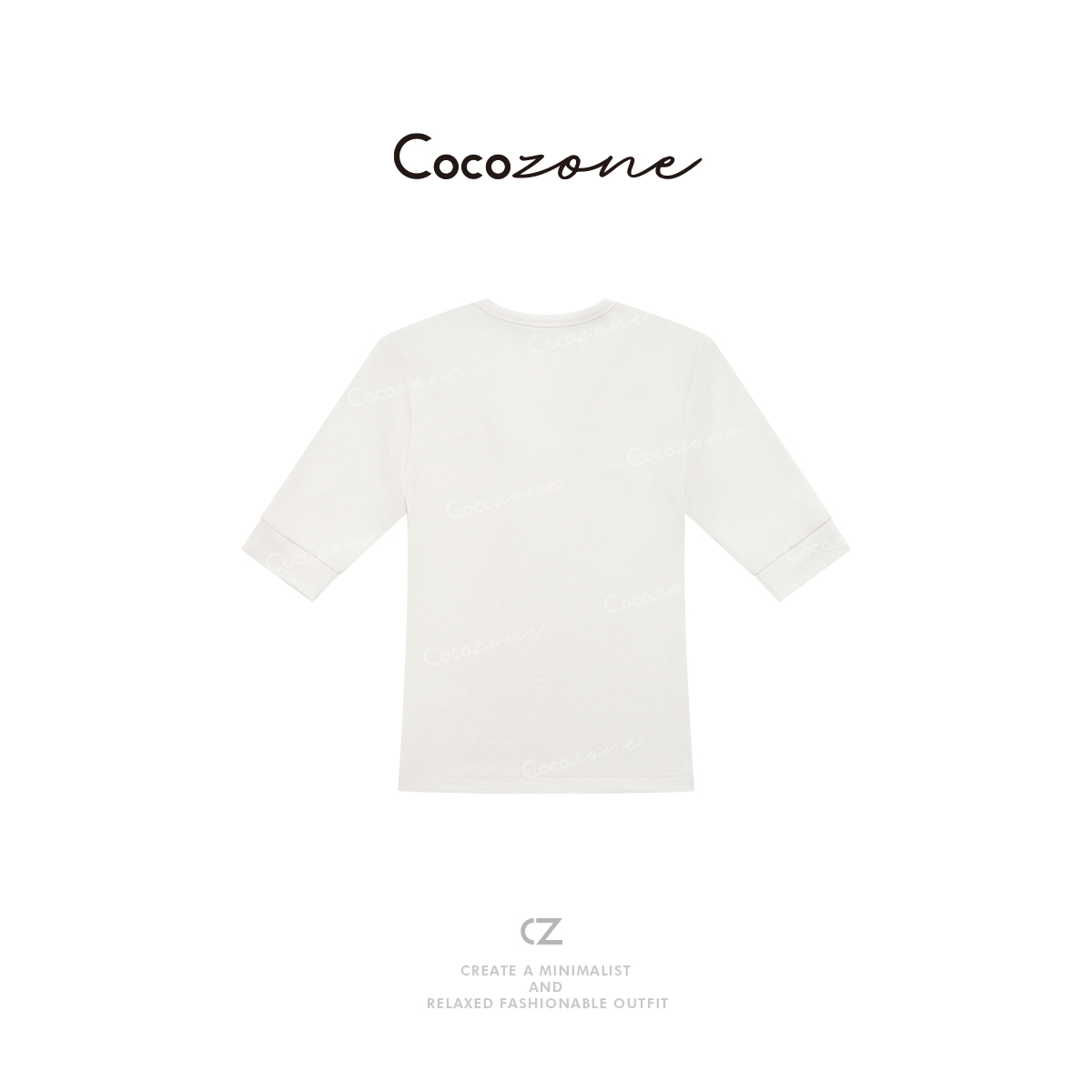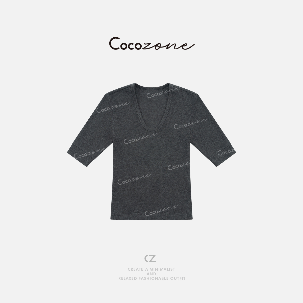 COCO ZONE 刘一一 【羊毛混纺】U领简约街头风短袖T恤 CD1A1012