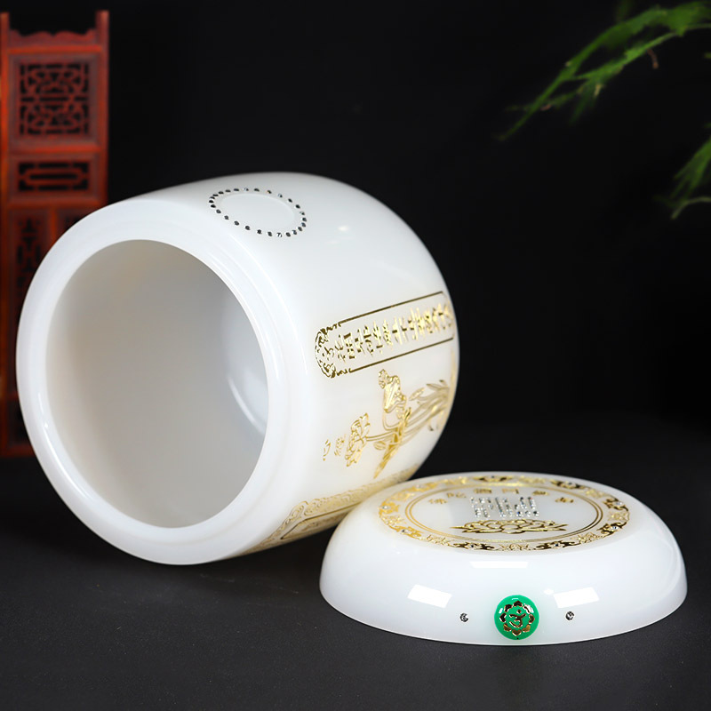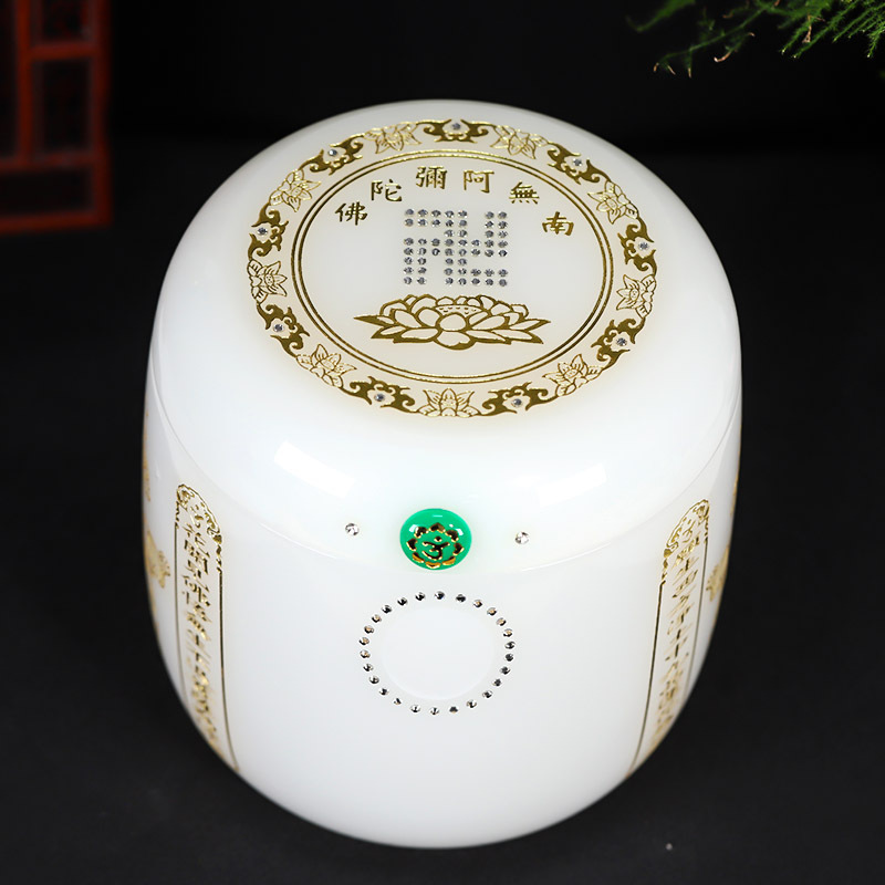 白玉瓷琉璃骨灰坛阿弥陀佛万字骨灰桶骨灰盒20*20cm