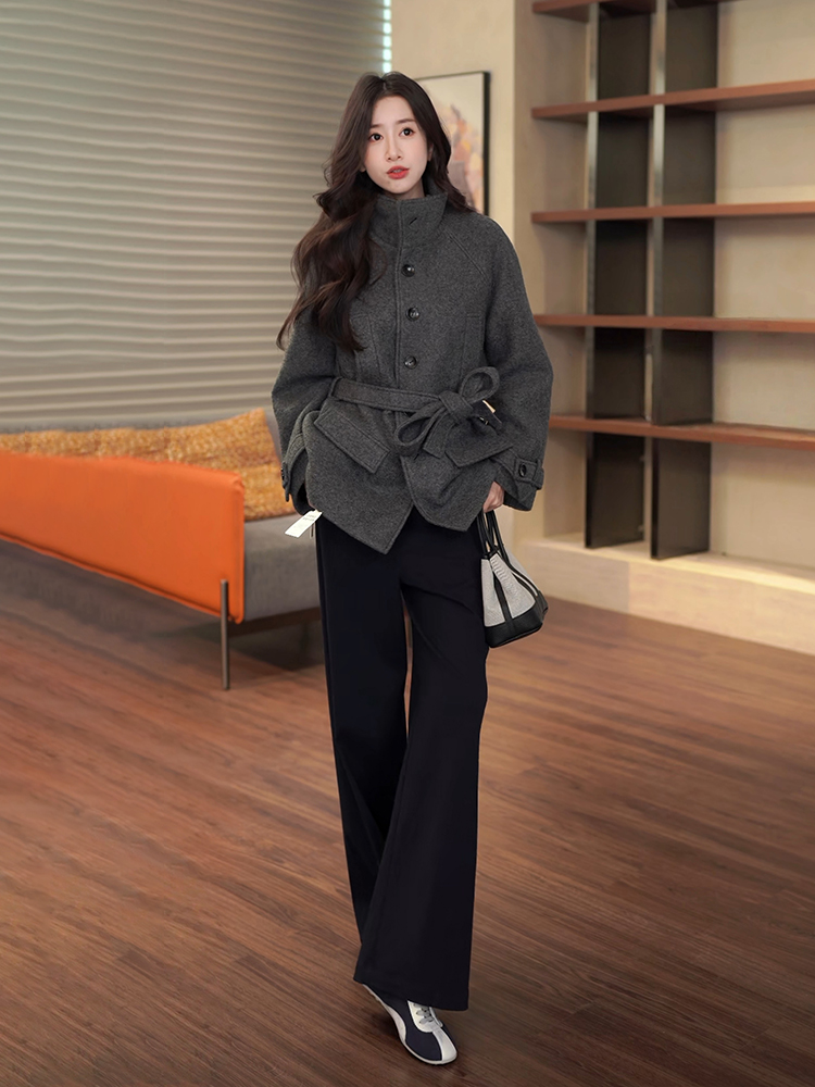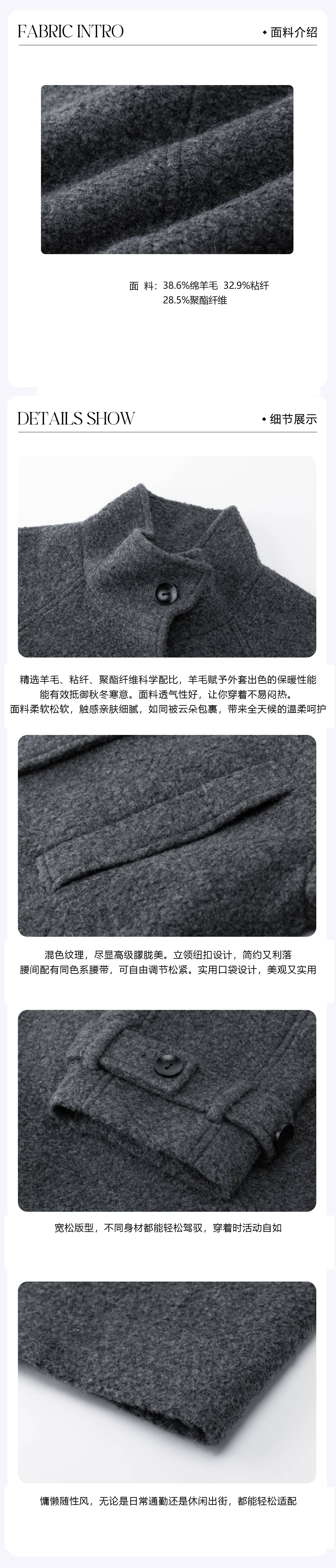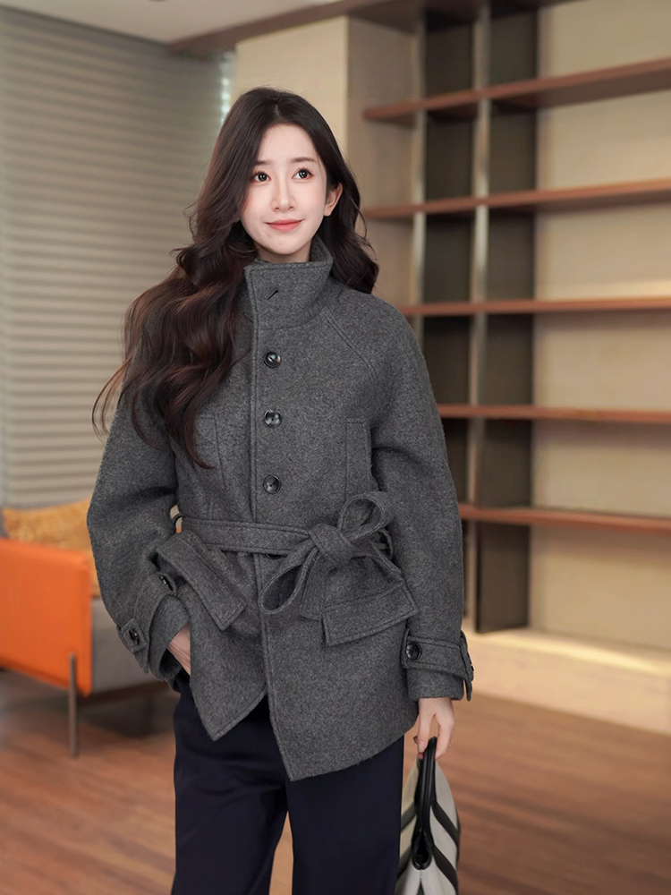 COCO ZONE 刘一一 25秋季新款冰川毛呢大衣外套立领收腰显瘦百搭大衣CD2A1691