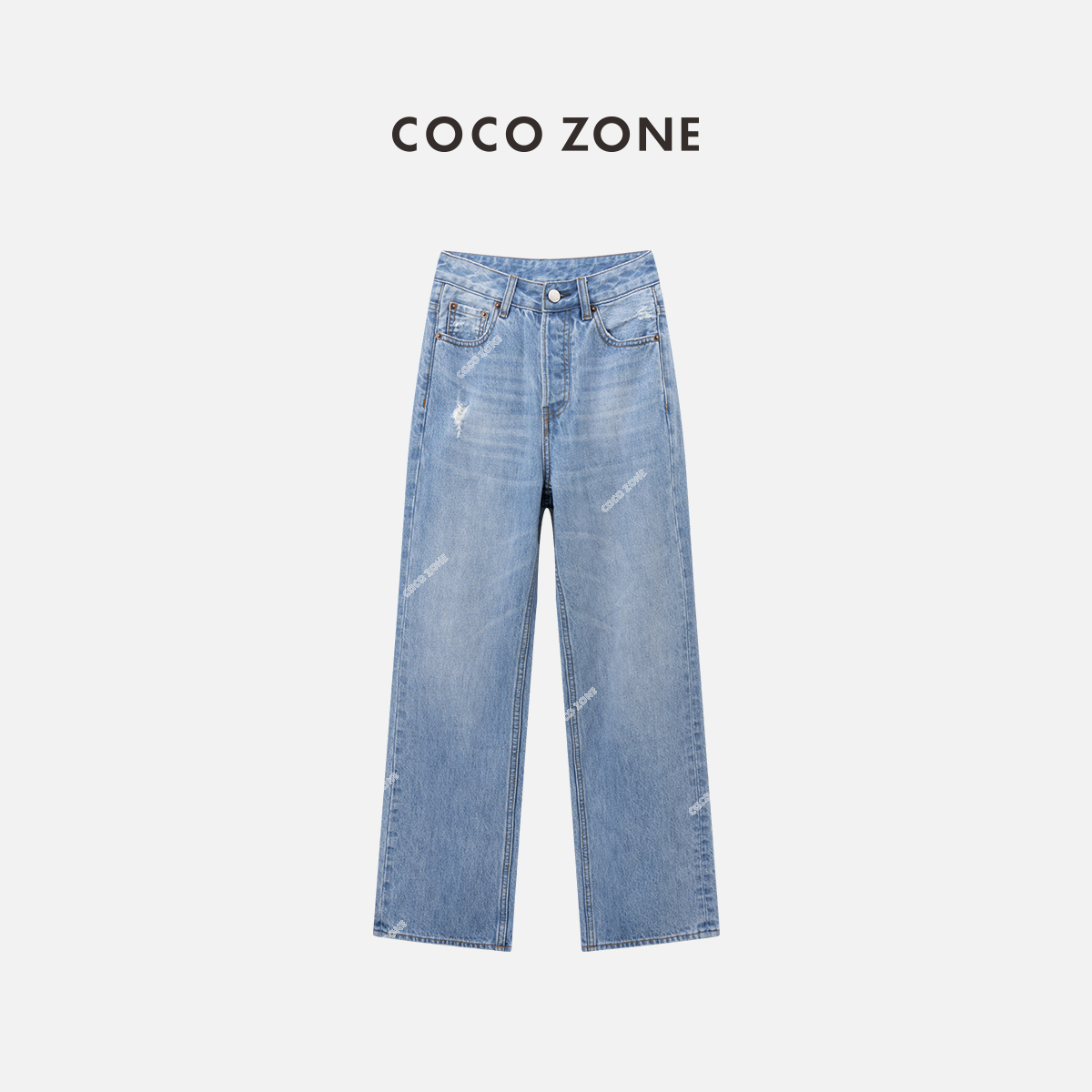 COCO ZONE 100棉复古牛仔裤水洗宽松显瘦百搭直筒裤 CC1A0406