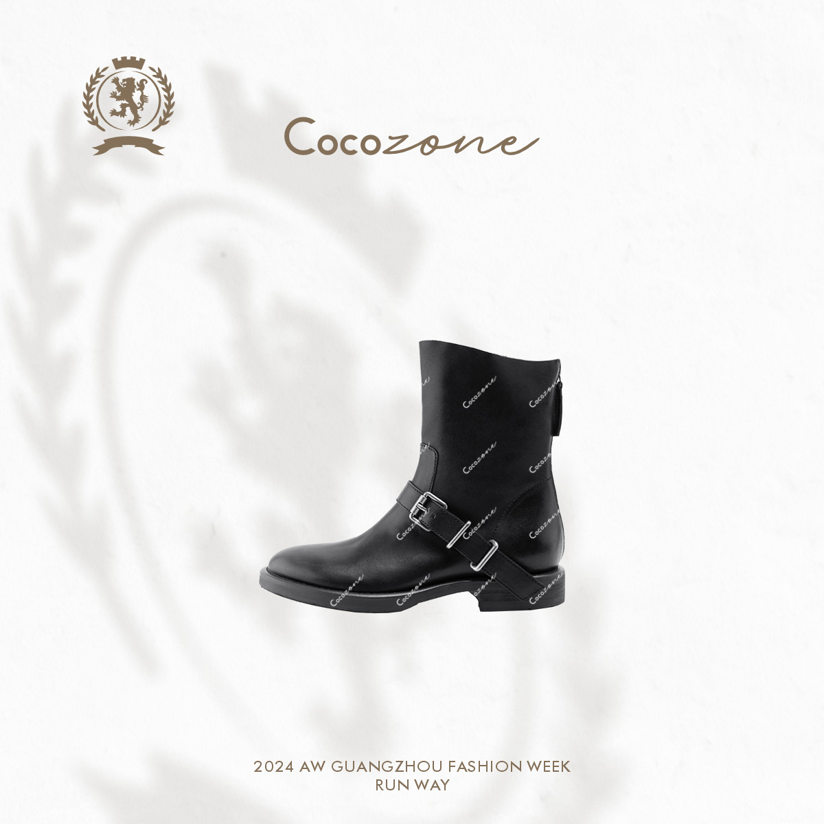 COCO ZONE 英伦风搭扣设计短靴复古粗跟女靴CC2C2297