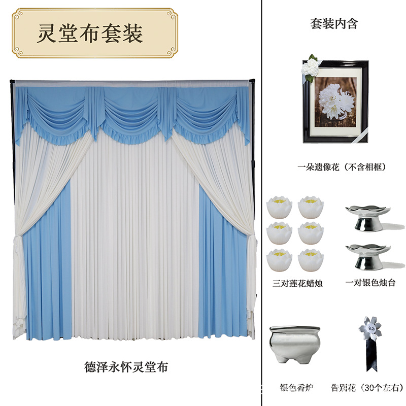 德泽永怀灵堂布套装高级灵堂殡仪馆家用悼念灵堂布置套装(灵布、一朵遗像花,不含相框、三对莲花蜡烛、一对银色烛台、银色香炉、告别花,30个左右)