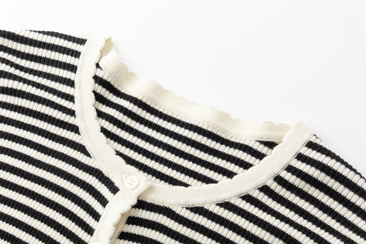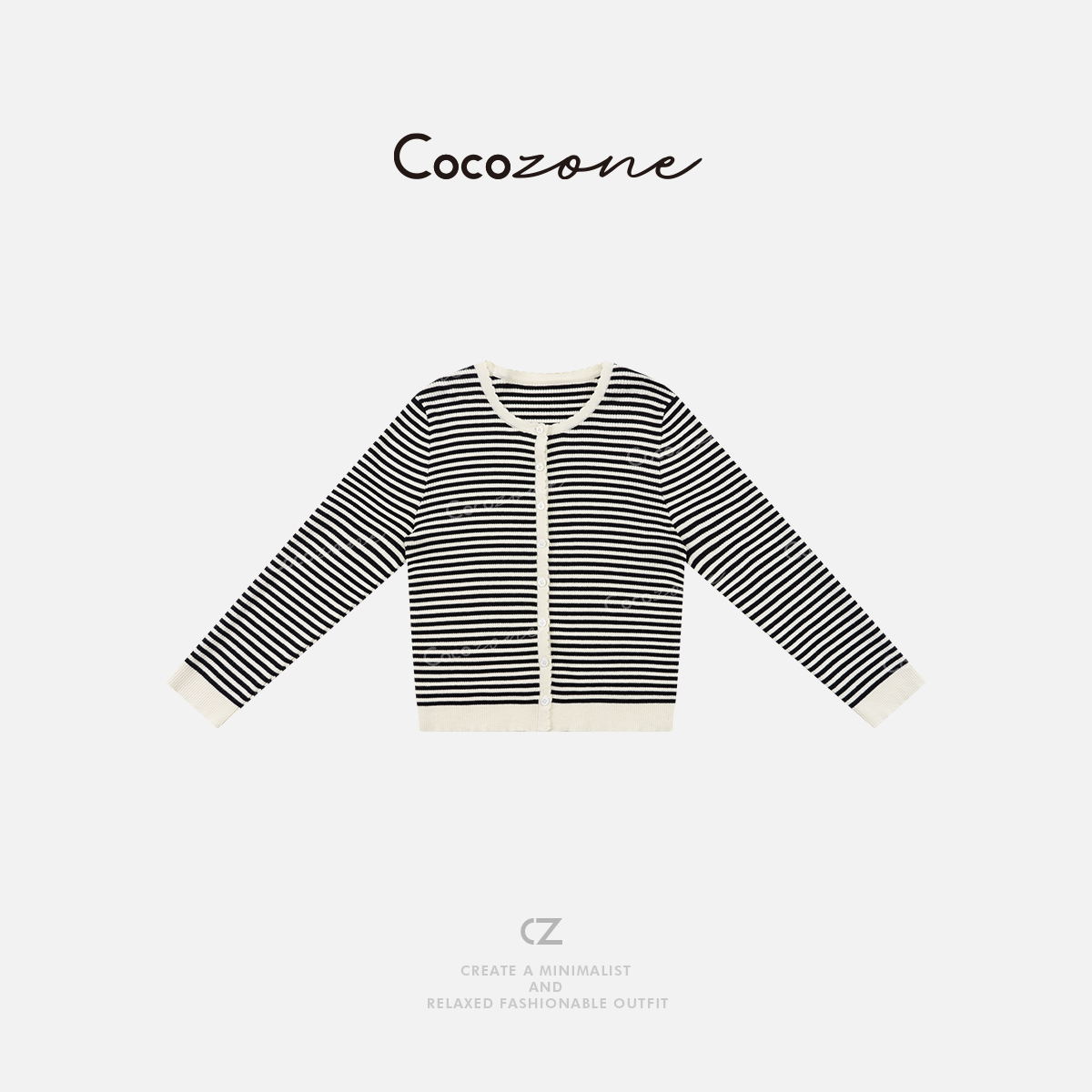COCO ZONE 刘一一 2025早春条纹撞色圆领针织开衫ACD1A0163