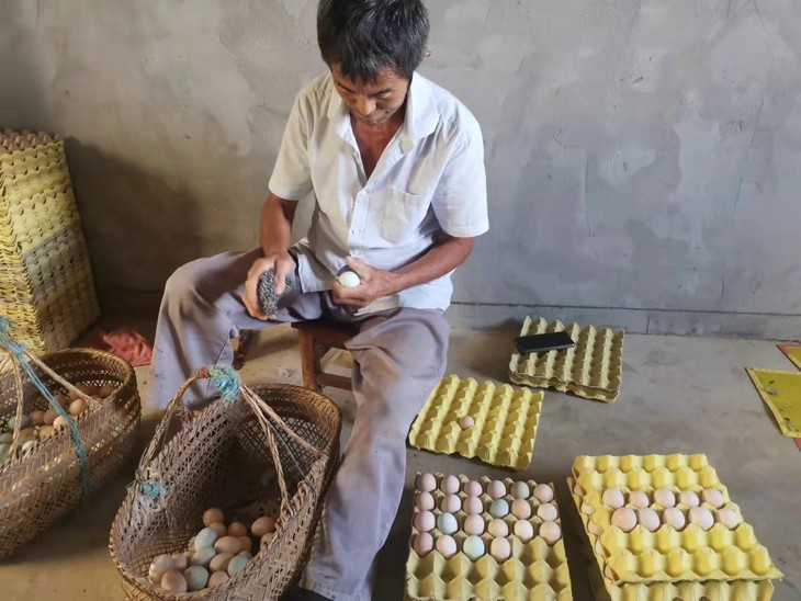 每个蛋还要经过人工筛选,挑捡出裂缝蛋,并逐个清洁一遍,包装入箱。