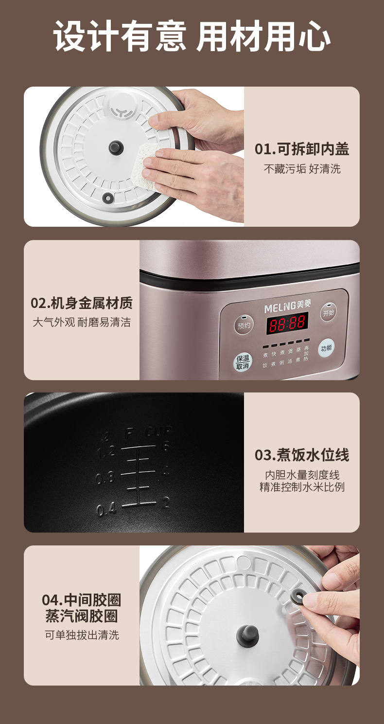 4、可拆卸上盖,金属拉丝机身,污垢一抹即净