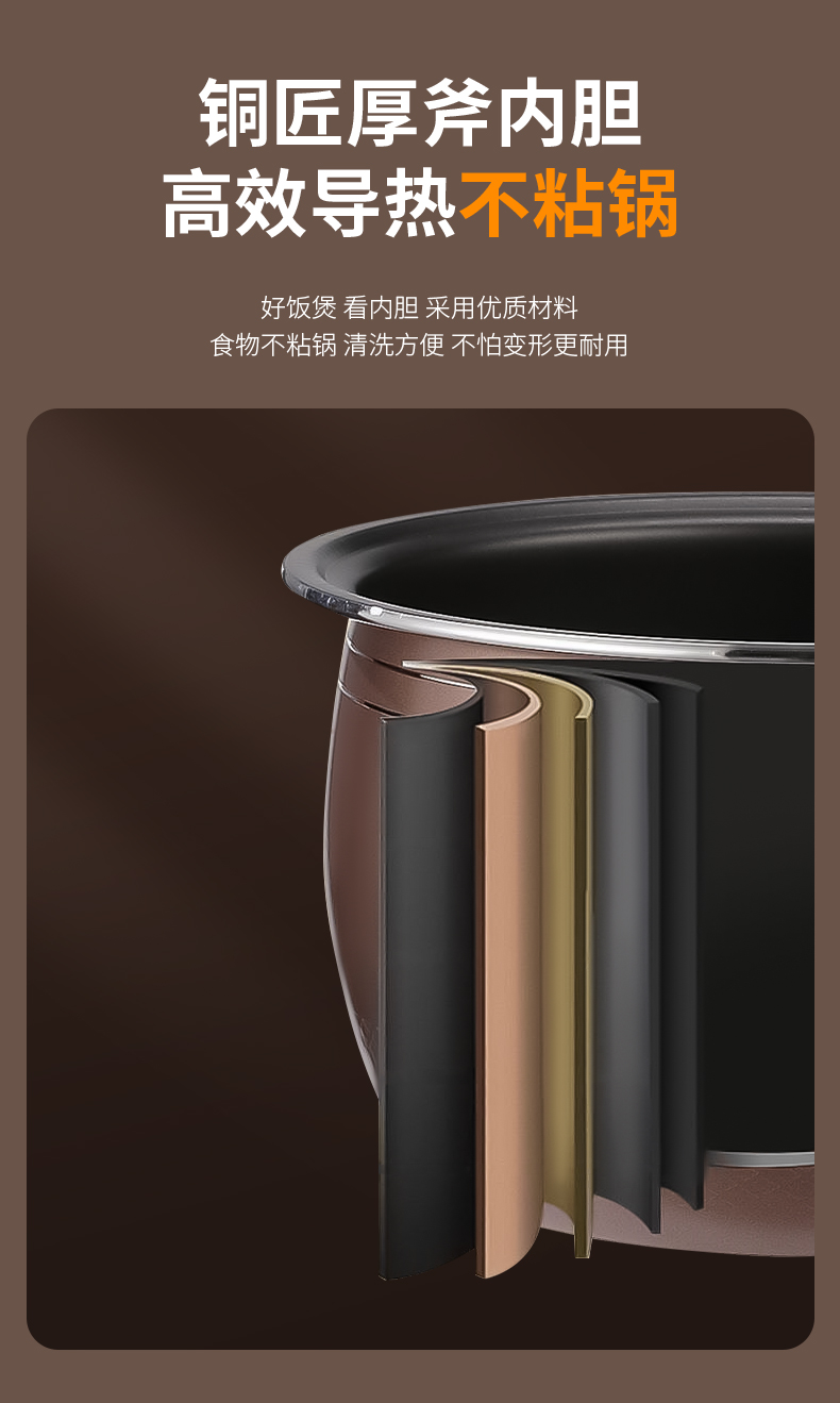 6、加厚金黄内胆,耐磨不粘,轻松清洗
