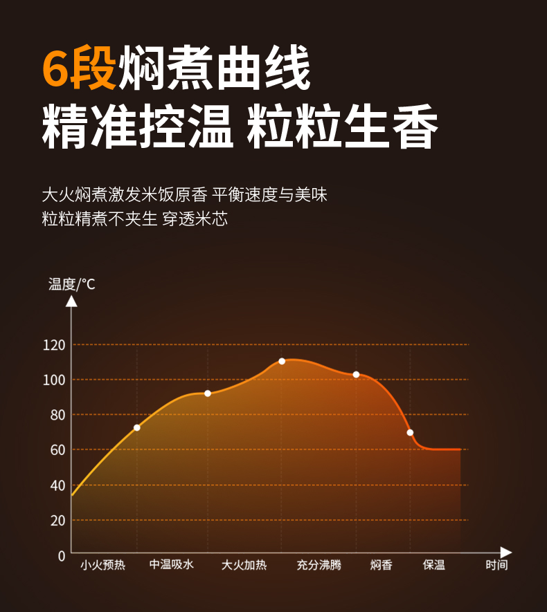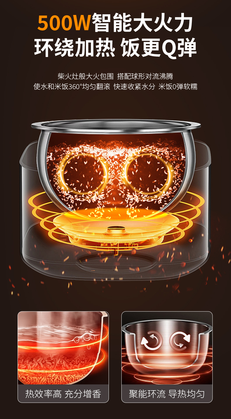 1、球釜环流大沸腾煮饭更均匀热量直达米芯更透芯,口感Q弹