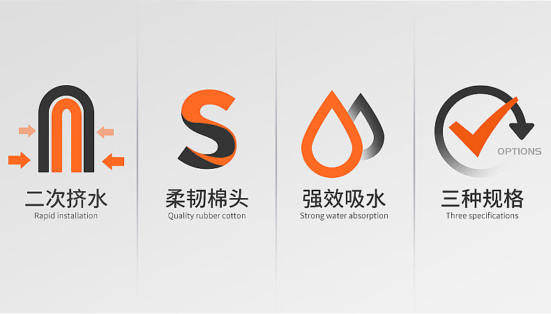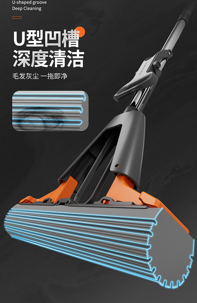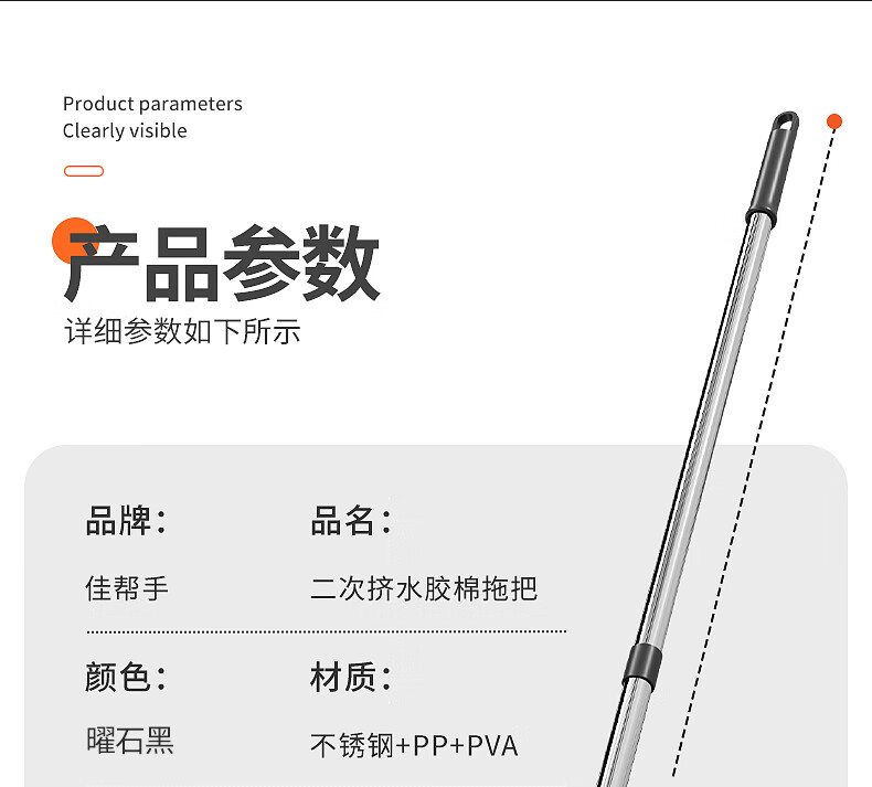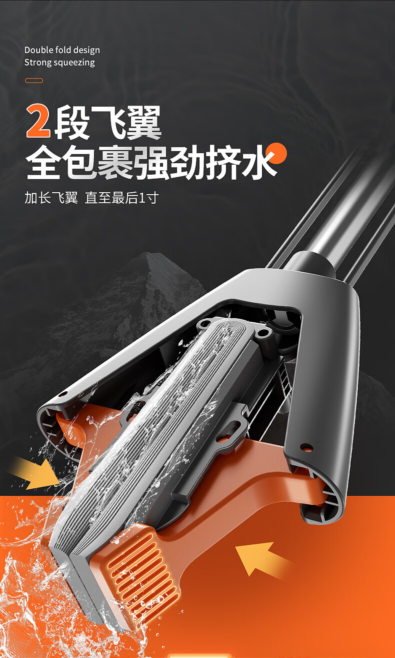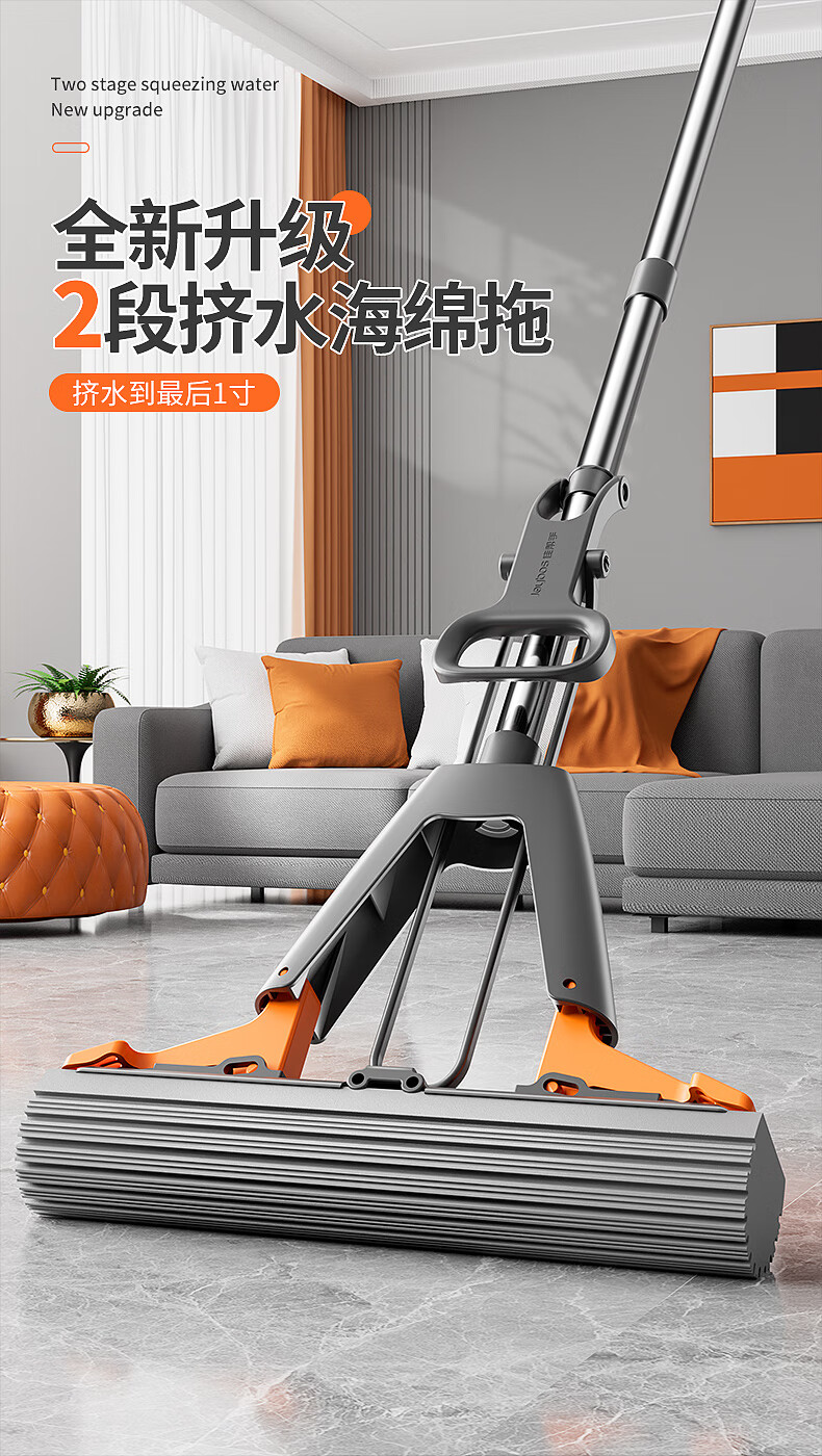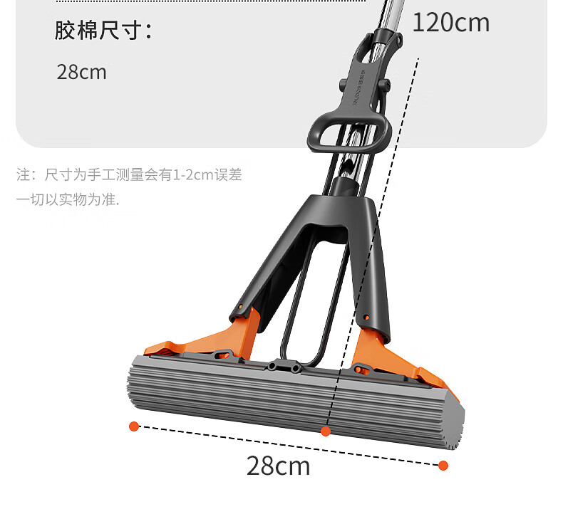 佳帮手扫除道28T1对折胶棉拖把-灰橙1只头JBS-JMTB-28T1-GOG1P