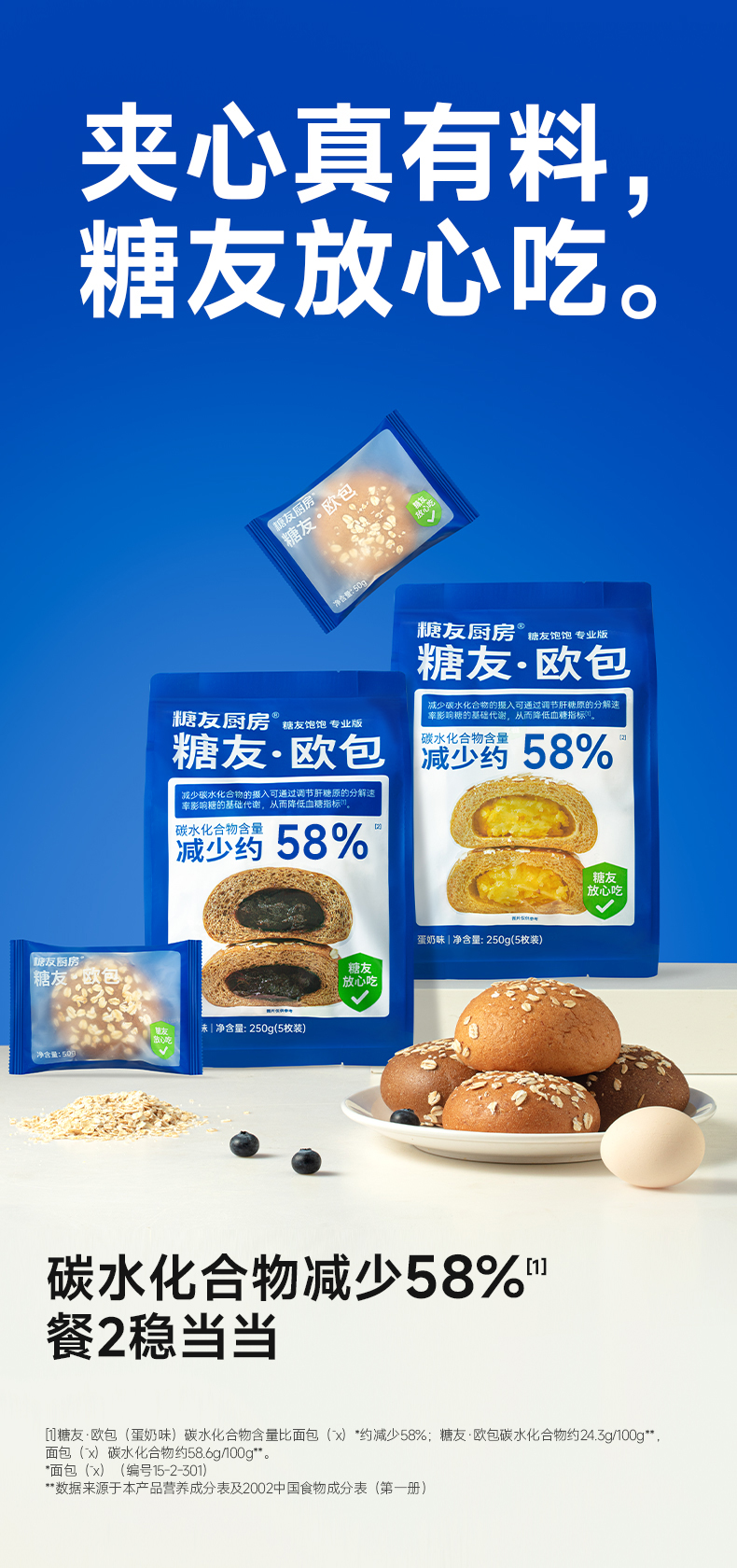【糖友饱饱】糖友饱饱控糖省心套餐共1715g(五黑800g+欧包500g+黑芝麻饼330g+蛋卷85g)