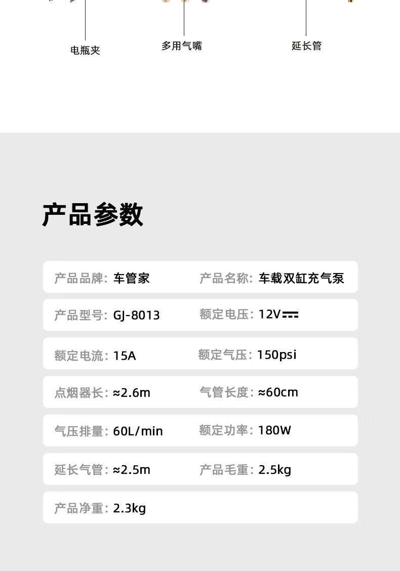 车管家车载充气泵GJ-8013