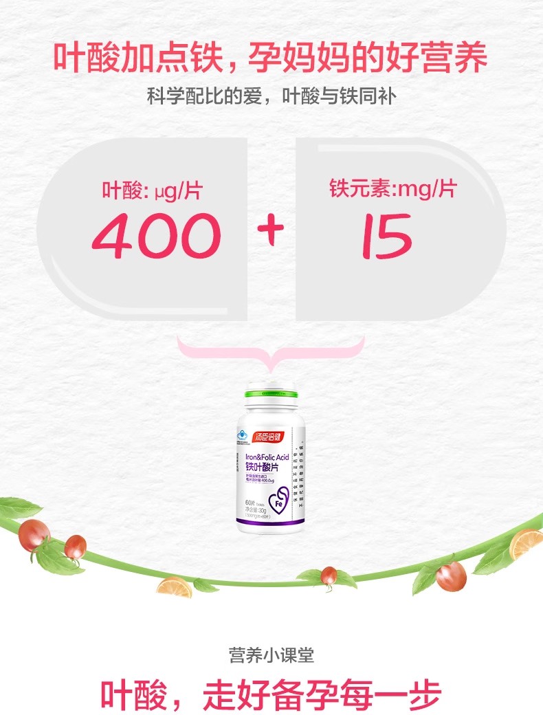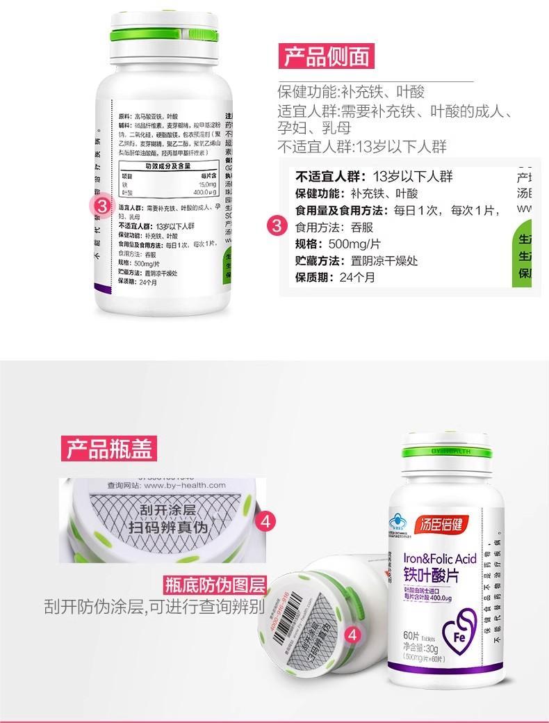 汤臣倍健®铁叶酸片30g(500mg/片*60片)