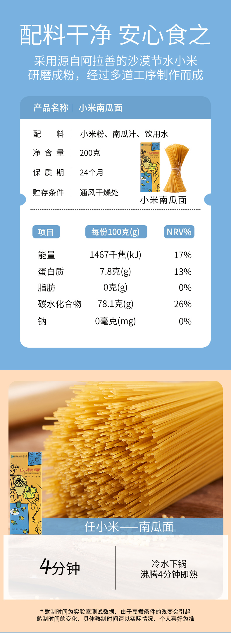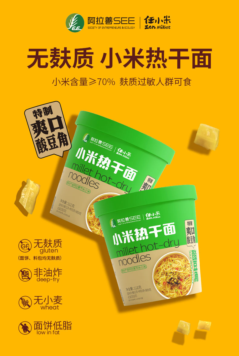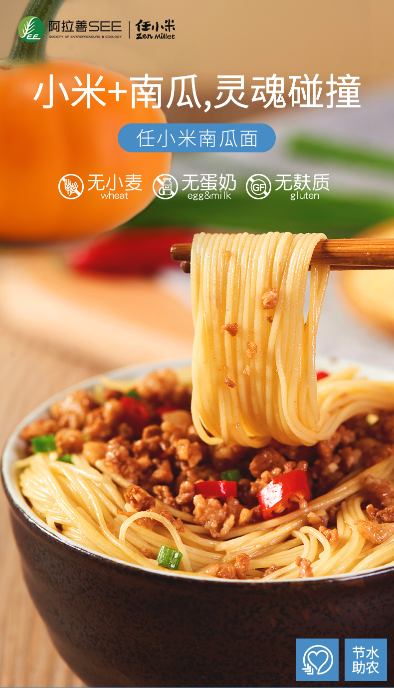 【任小米】无麸质小米面条南瓜面小米热干面早餐面宝宝面条无小麦无蛋奶