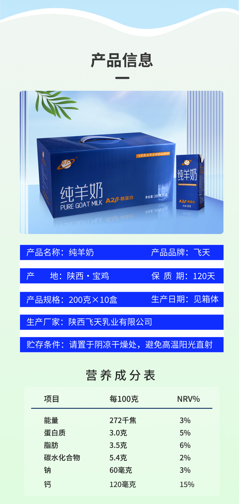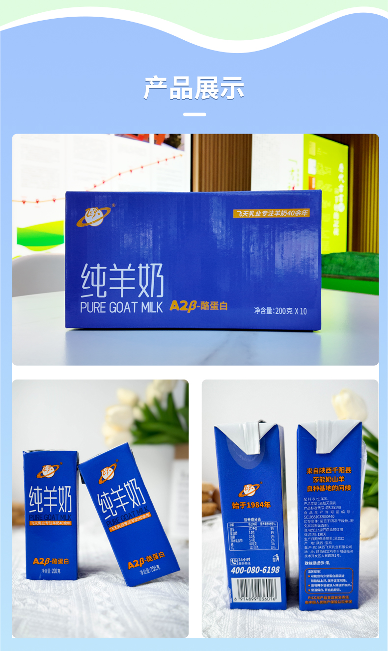 飞天A2β-酪蛋白纯羊奶200g*10盒 配送到家
