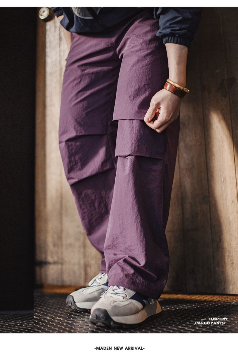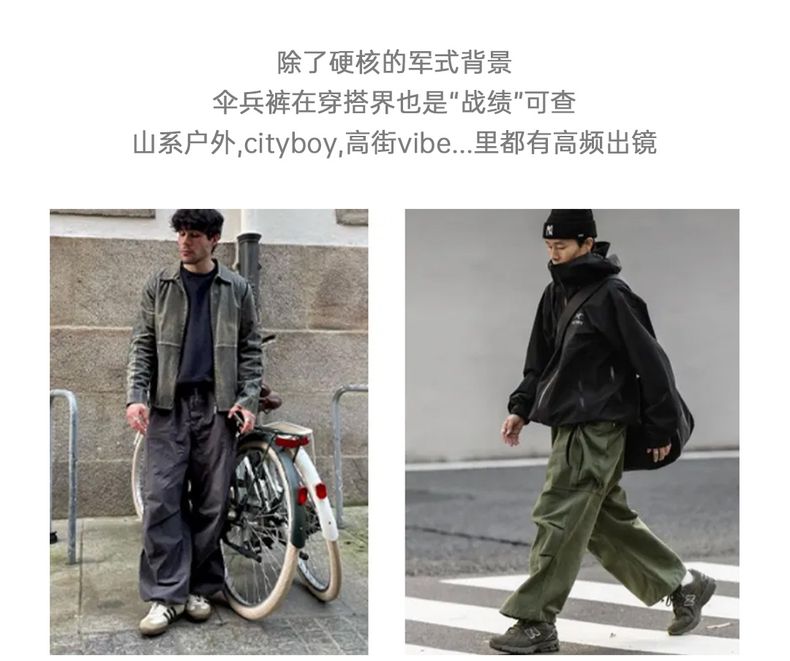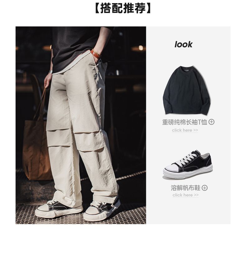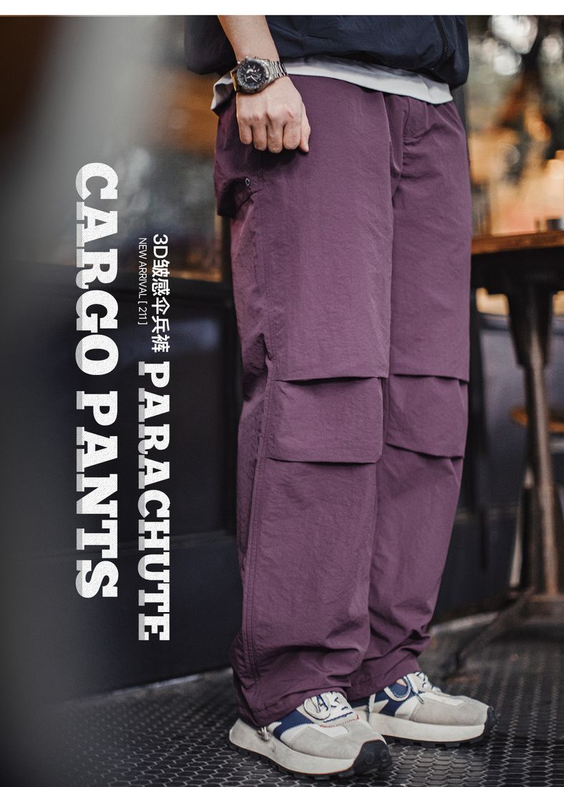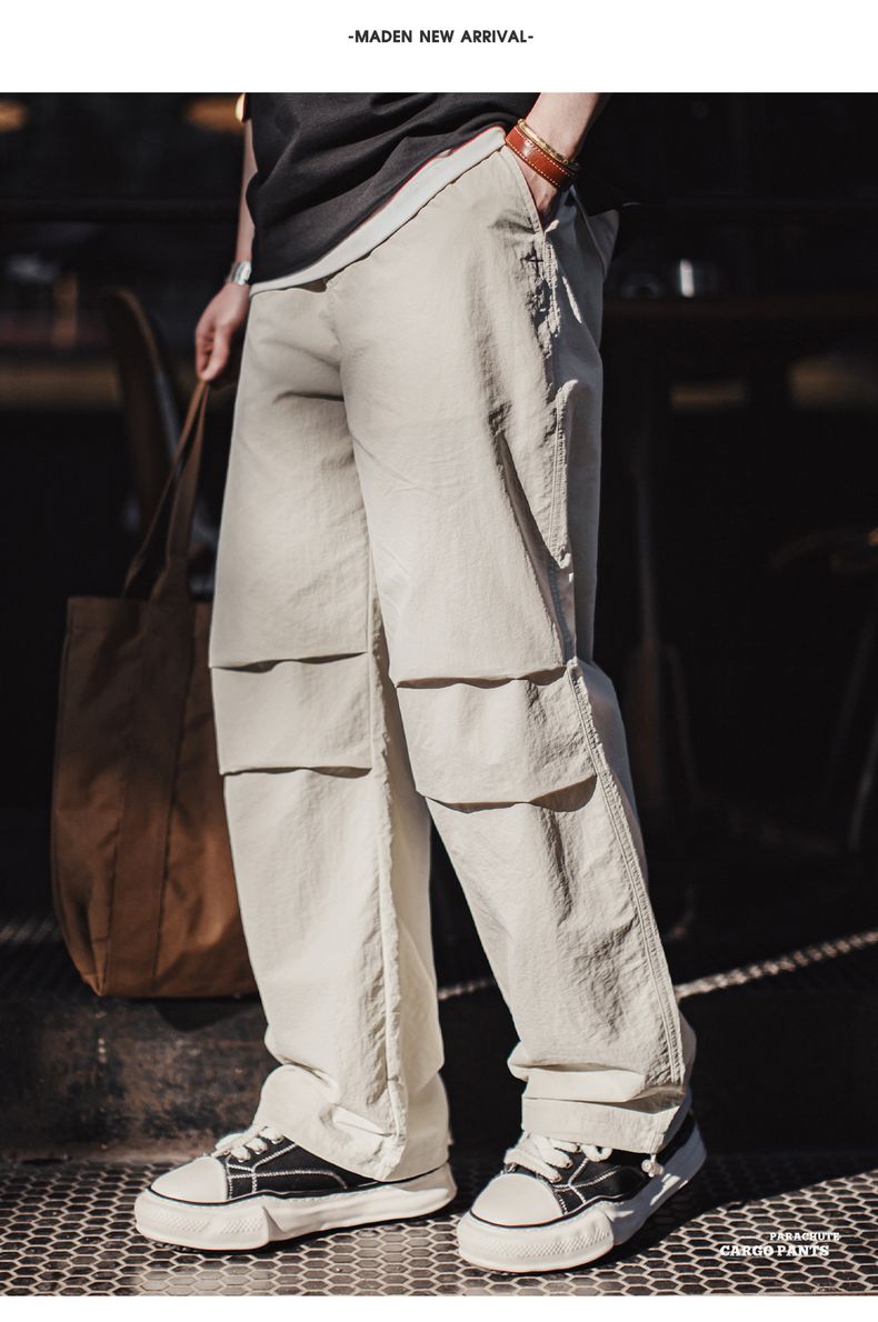 工装优选美式复古3D褶皱伞兵裤尼龙肌理感休闲裤vibe直筒长裤男春