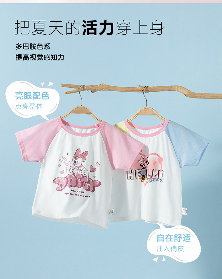 迪士尼宝宝(Disney Baby)女童短袖T恤上衣时尚休闲百搭透气卡通短袖夏季新款ZD2ES007*