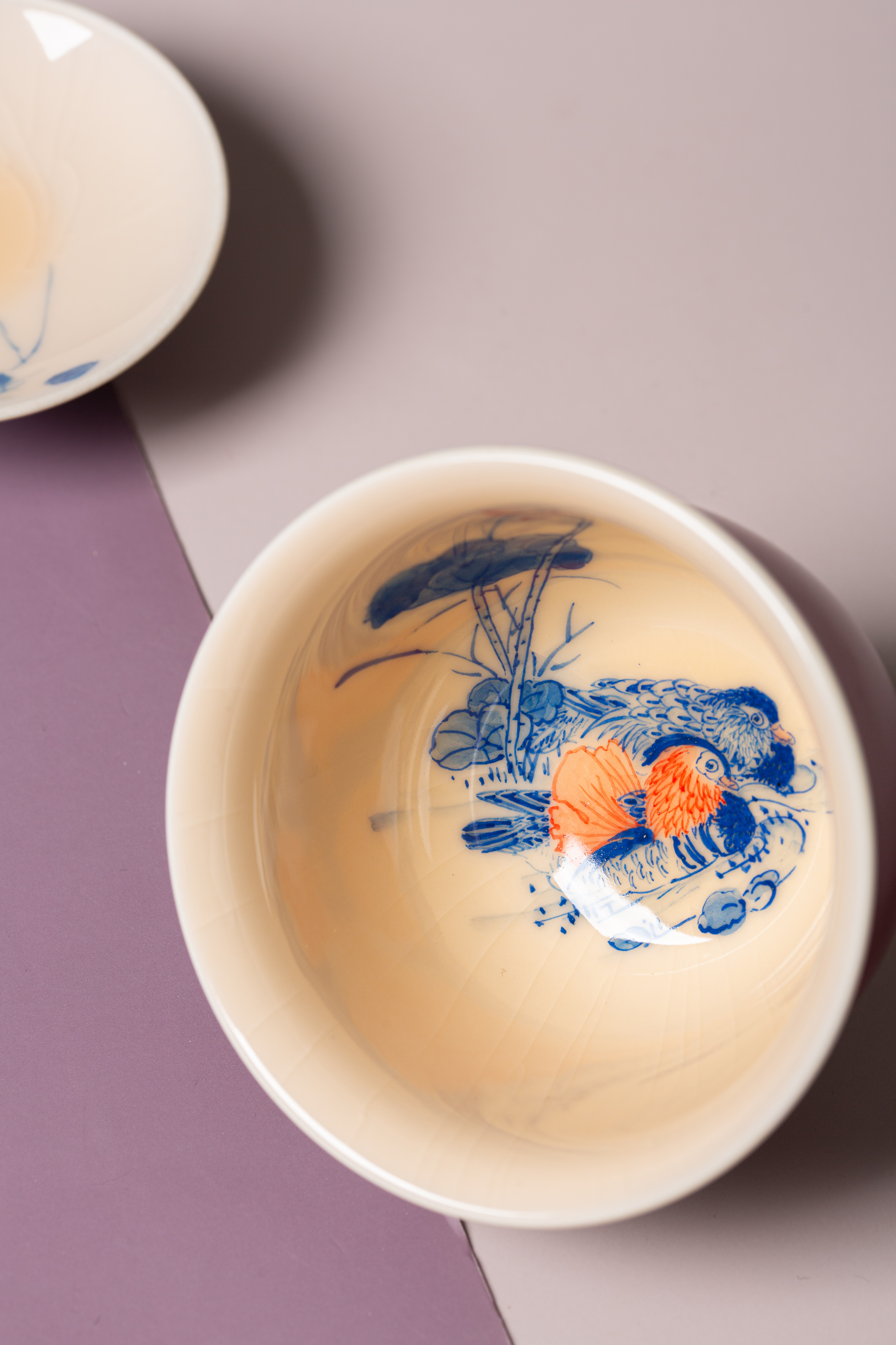 问鼎钧瓷/梦鼎/鹅黄青花/精工款/辉景盖碗(百年好合)