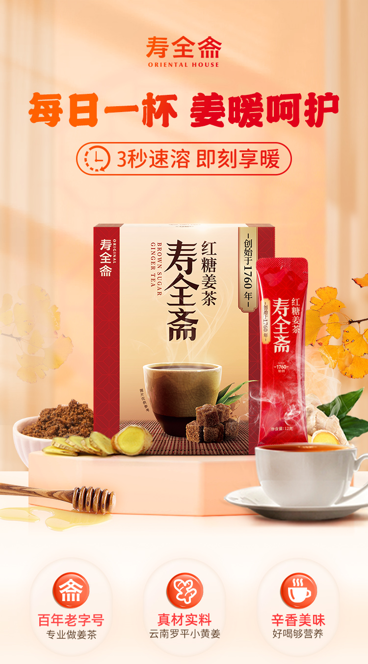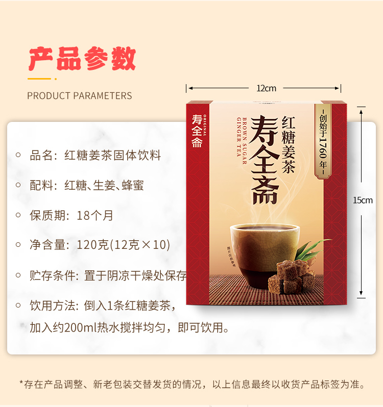 【配方升级】寿全斋红糖姜茶12g*10包/盒