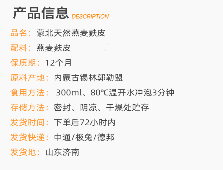 蒙北 天然燕麦麸皮 160g/袋(8g*20条)