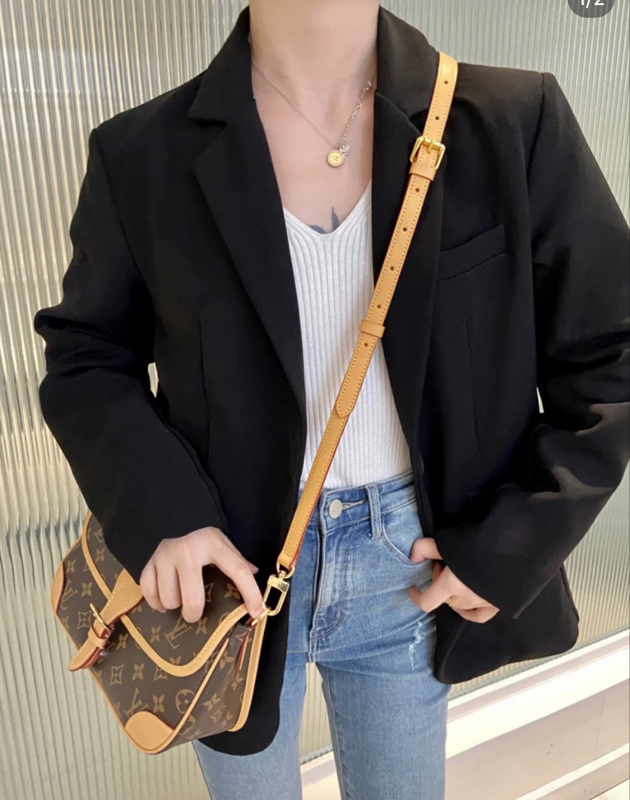 手袋配有一根皮肩带(可腋下背)一根刺绣肩带(可肩背斜跨)都可以拆卸,容量日常足够用装大号手机毫无压力,皮带式的扣扣是装饰其实是磁铁开合还算比较方便~中间有隔层,方便整理东西,还有个拉链区,可以放些贵重物品