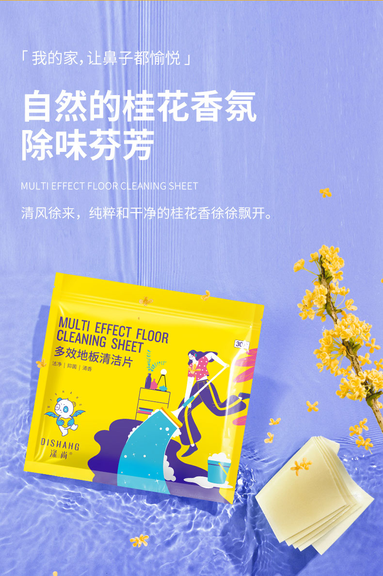 家用地板瓷砖抑菌清洁片(桂花香) · DISHANG涤尚 瓷砖地板清洁片 木地板除菌 地板养护去污除垢多效清洁剂 30片|品牌直发