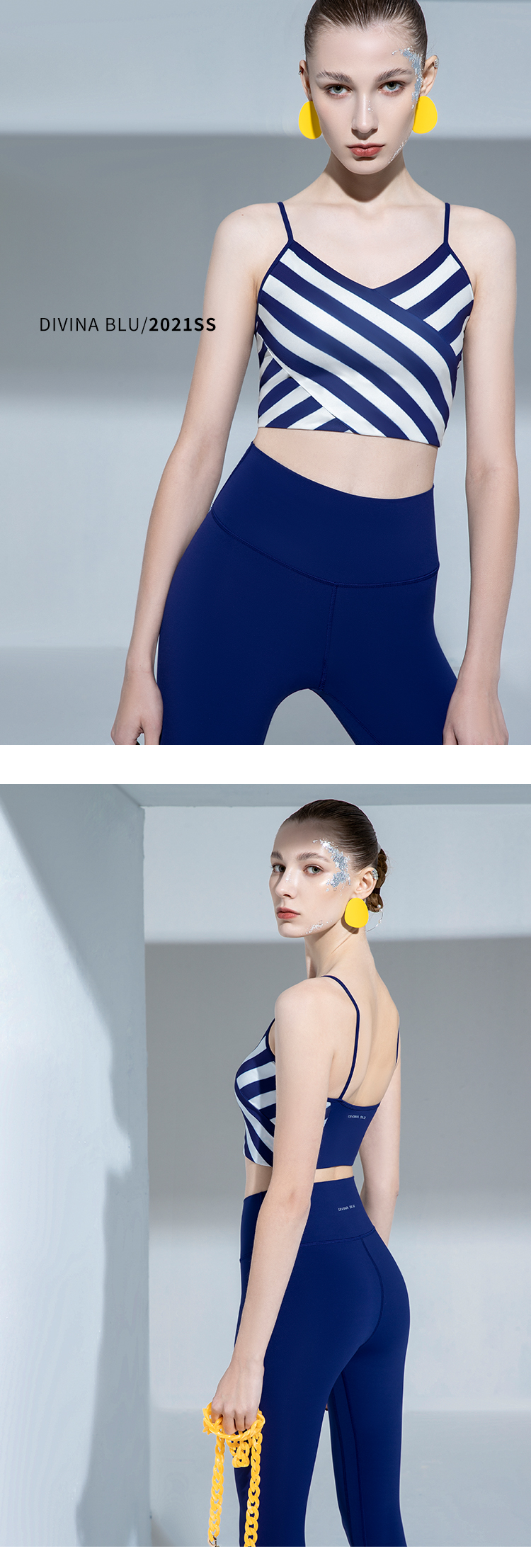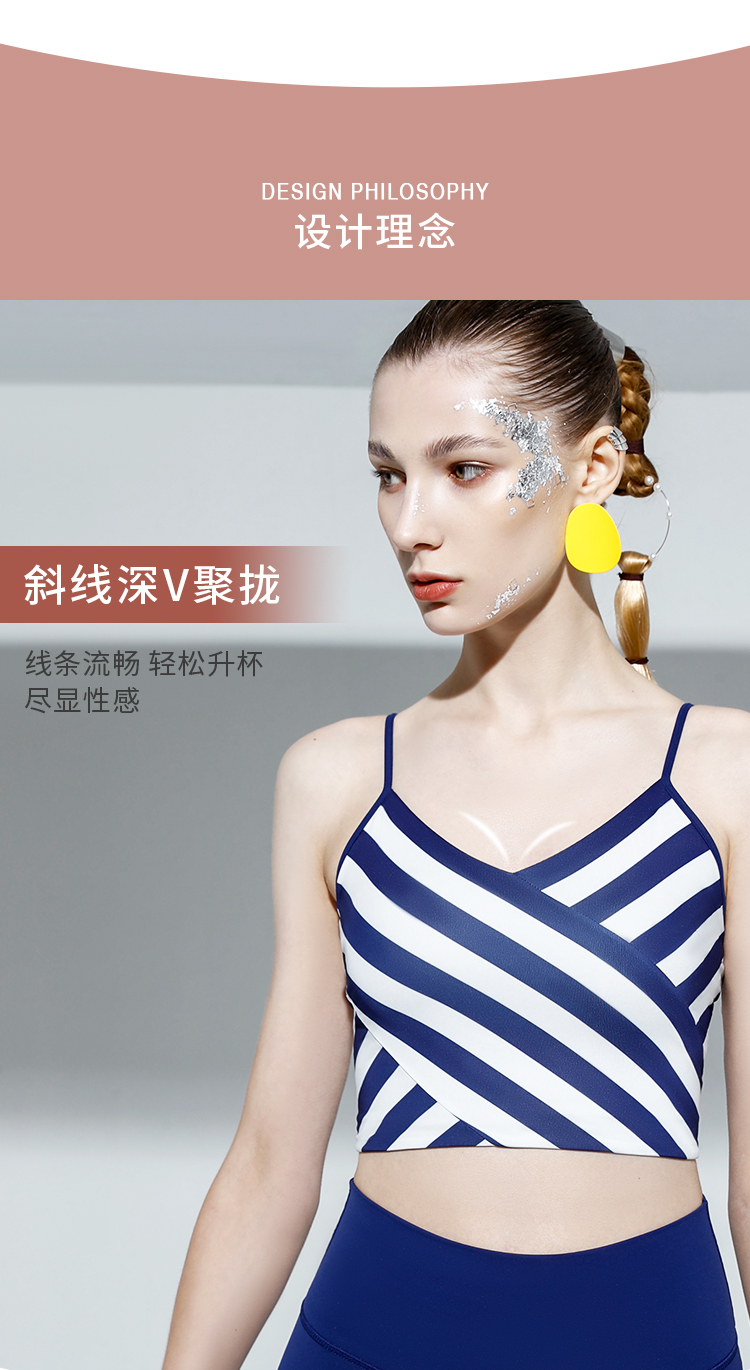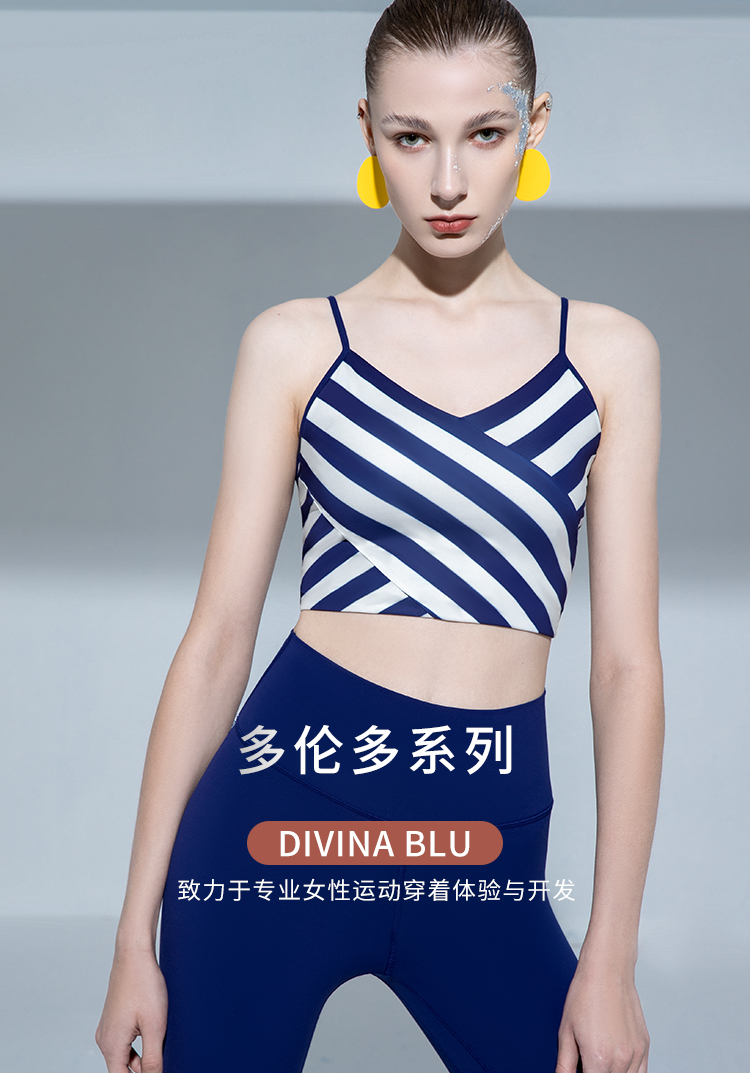 DIVINA BLU多伦多海洋条纹瑜伽内衣 女士美背运动文胸 舒适休闲背心