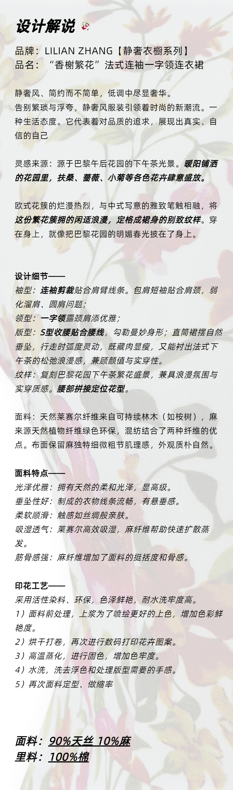 “定制”静奢风「巴黎简奢」“香榭繁花”法式连袖一字领连衣裙 2501150