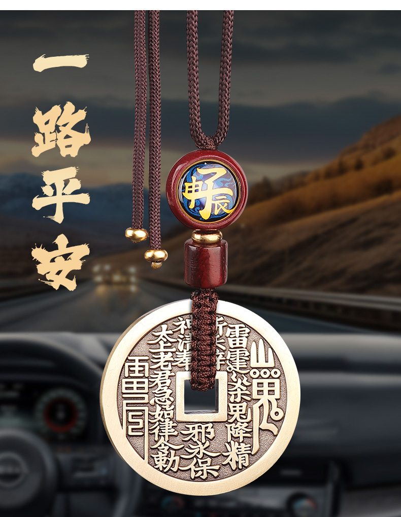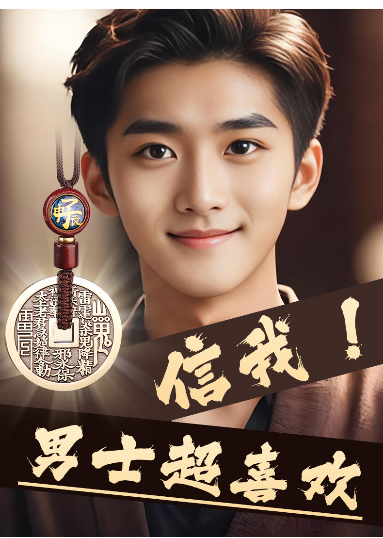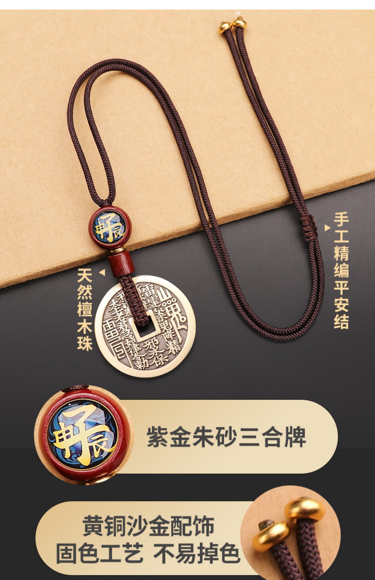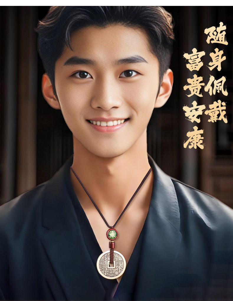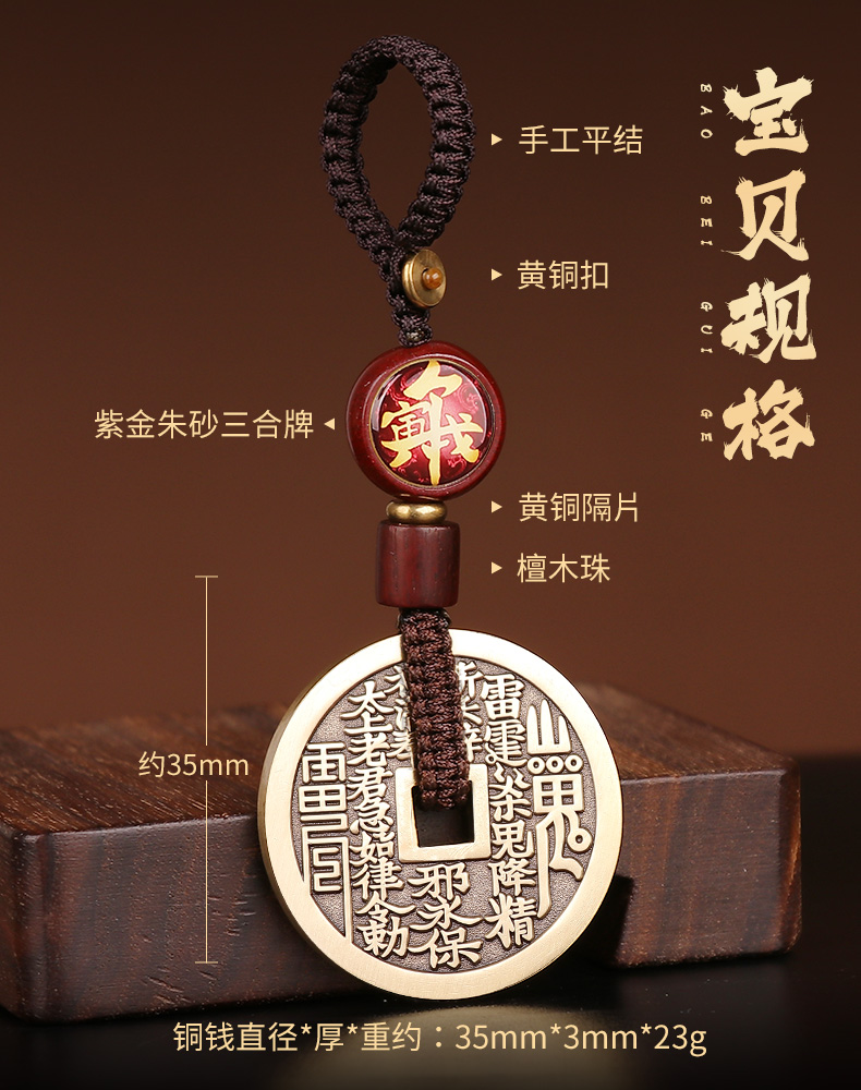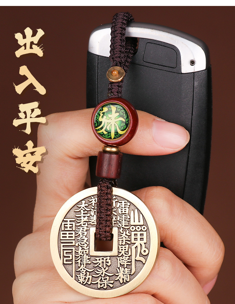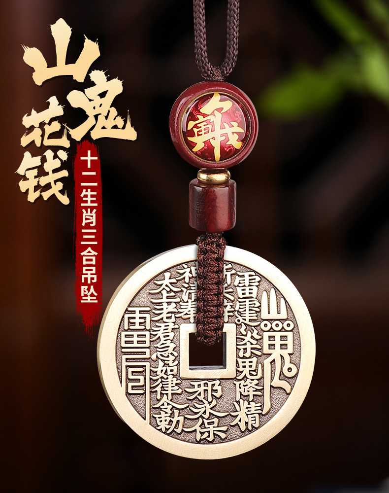 黄铜三合生肖花钱吊坠