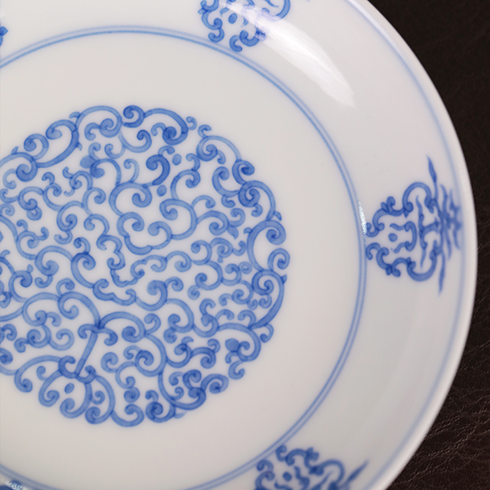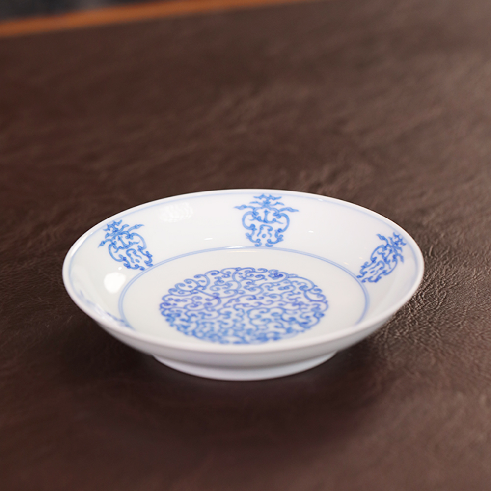 【忘言】天蓝釉青花寿字小壶承 曰何茶器