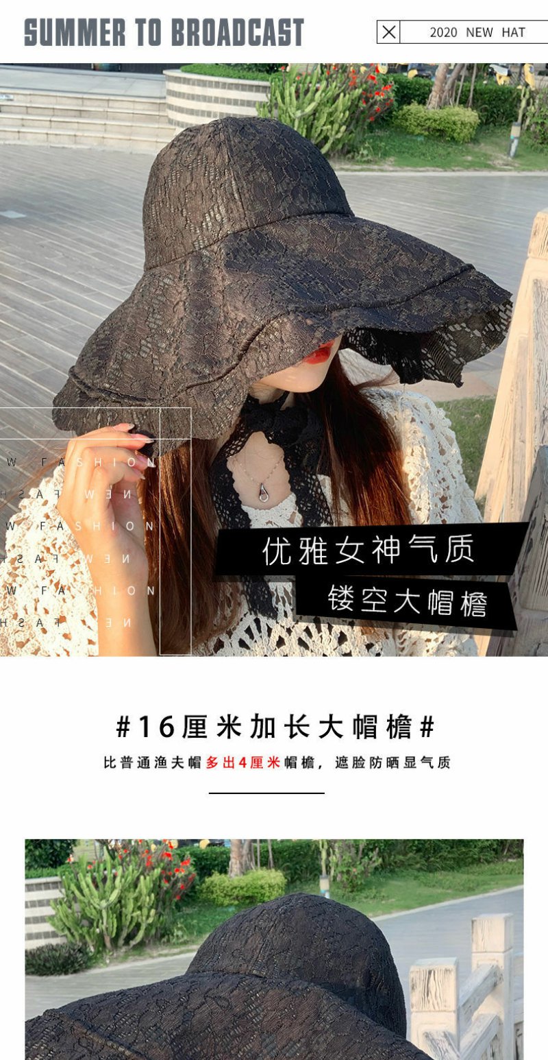 女子夏季大檐防晒帽亲子洋气遮阳帽女童薄款太阳帽蕾丝公主帽子女