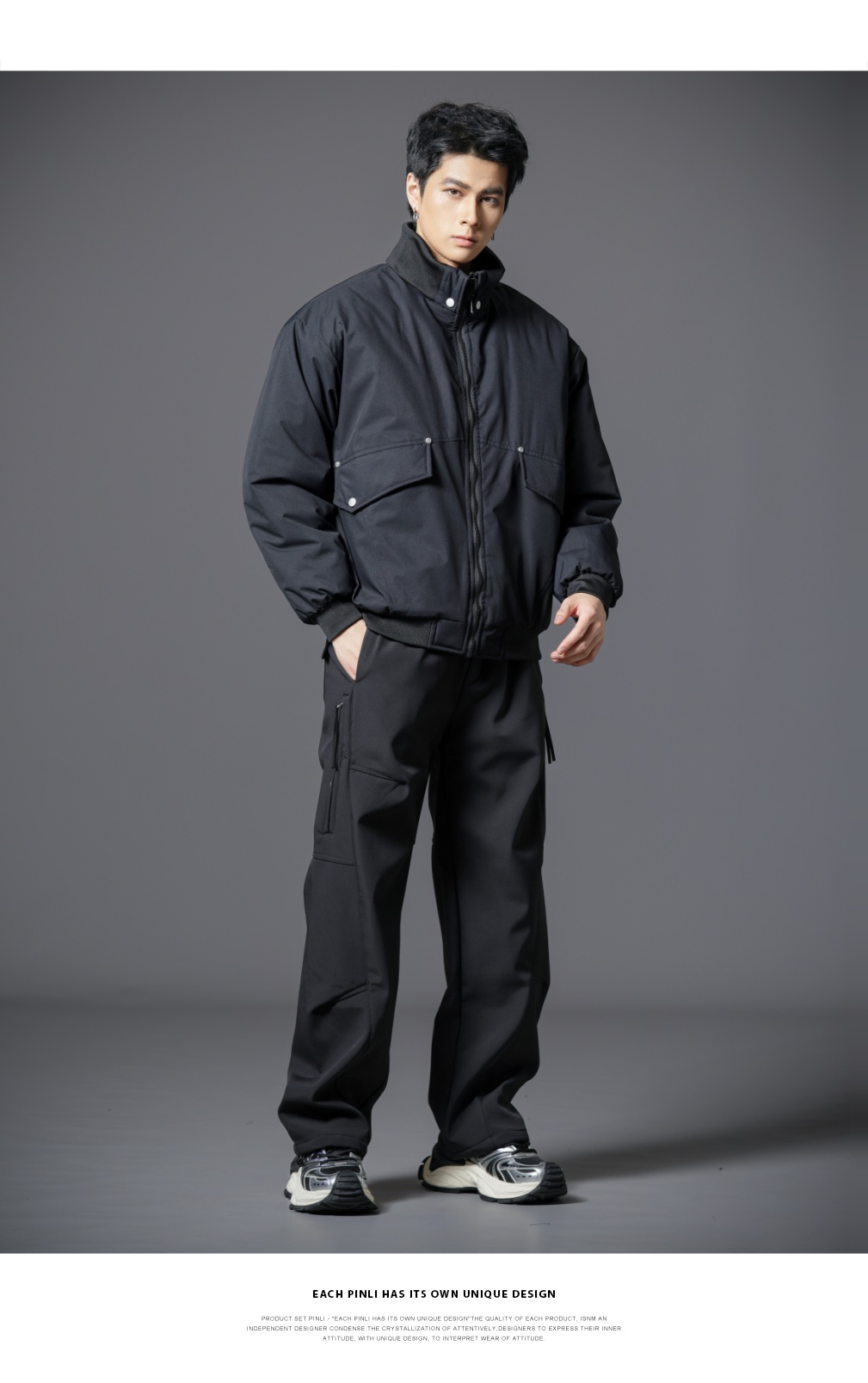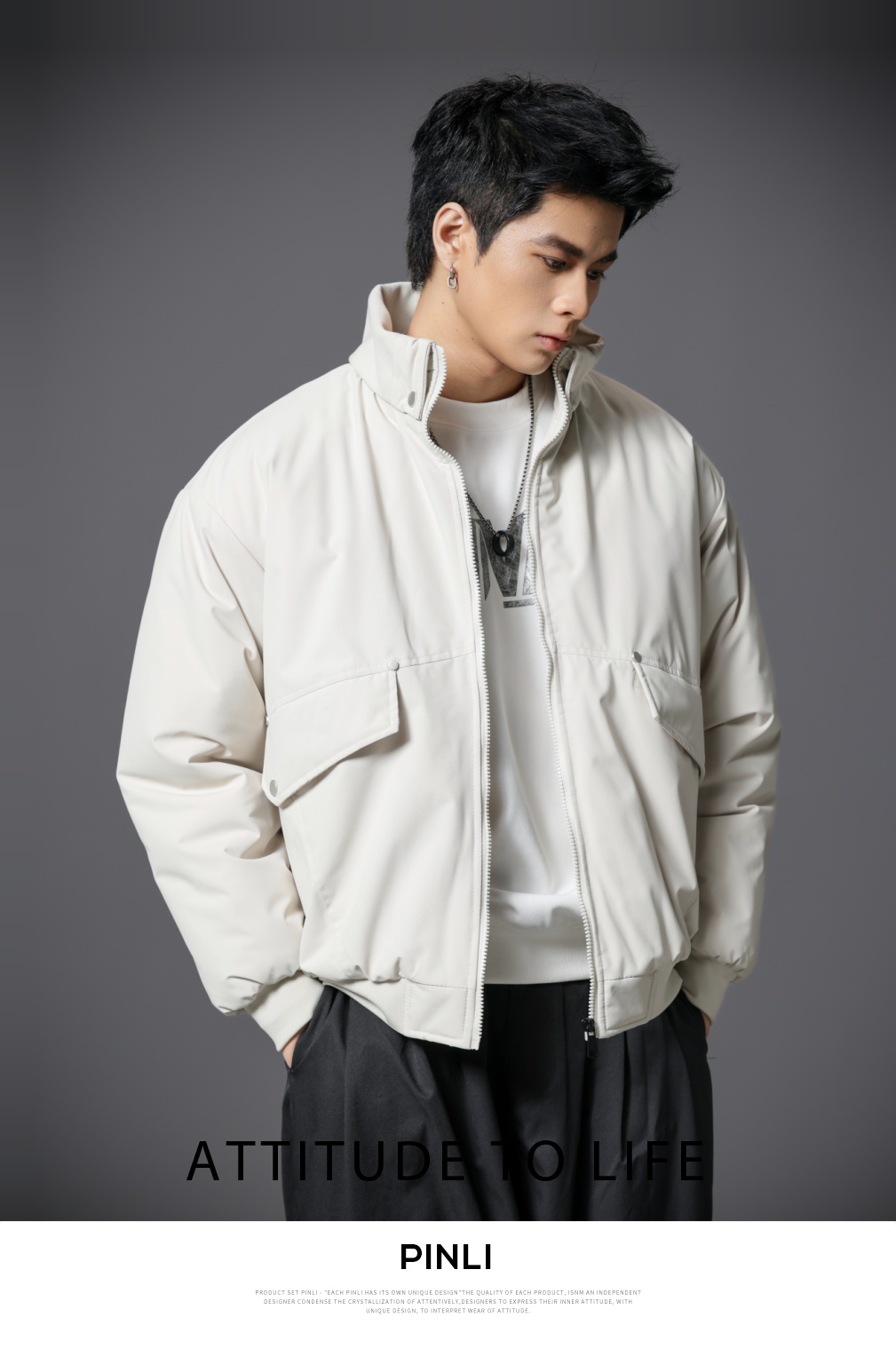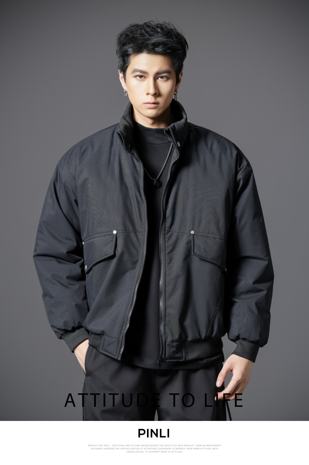PINLI品立2025冬季新款潮牌立领飞行棉衣男士工装风宽松棉服外套GD253105188