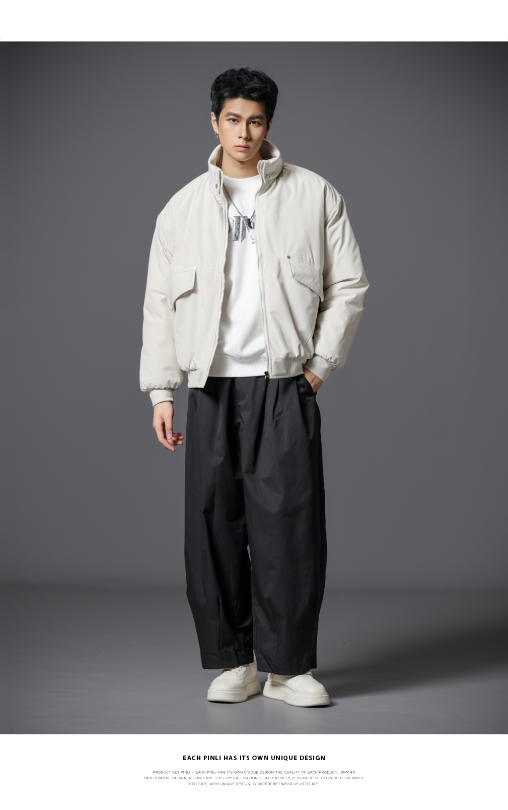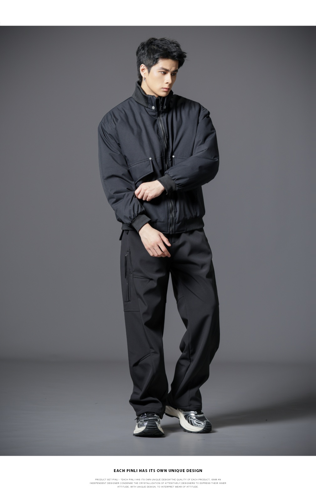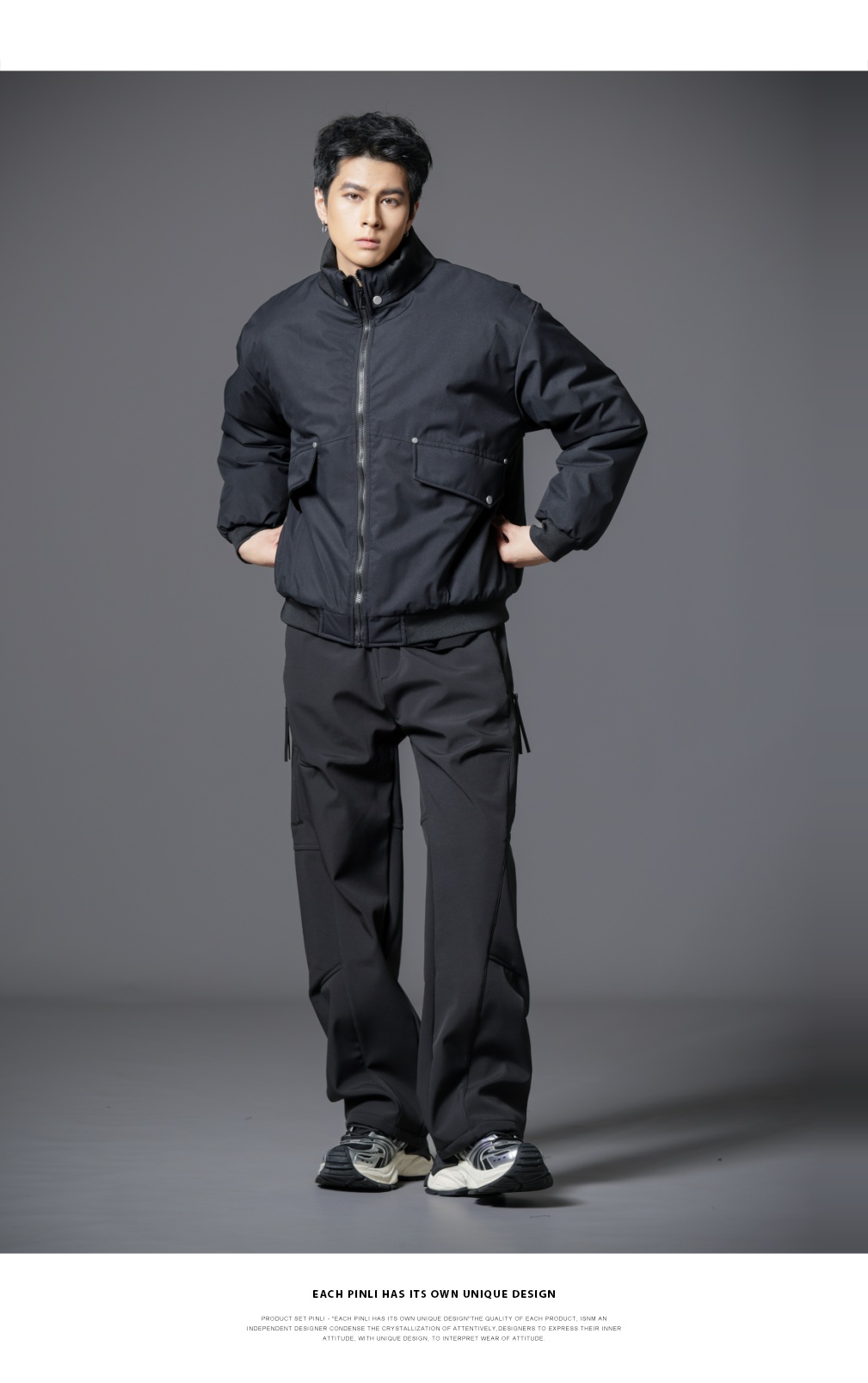 PINLI品立2025冬季新款潮牌立领飞行棉衣男士工装风宽松棉服外套GD253105188