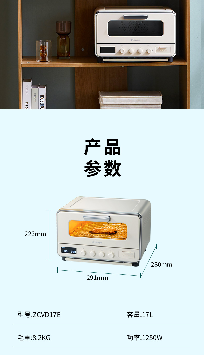 长帝ZCVD17E烤箱家用小型多功能全自动电烤箱迷你烤箱蒸烤一体