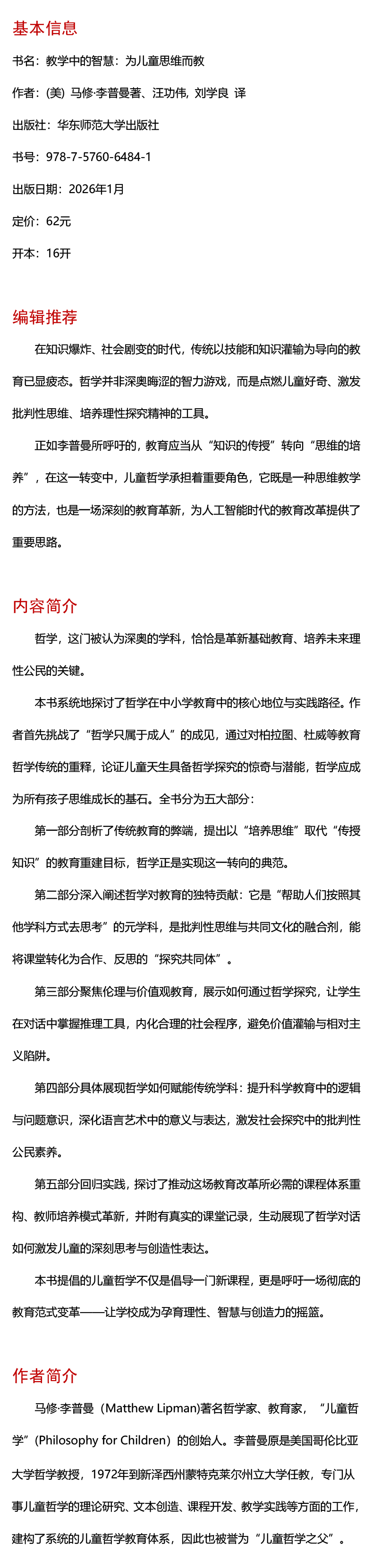教学中的智慧 为儿童思维而教 儿童哲学 思维教学方法 人工智能时代教育革新
