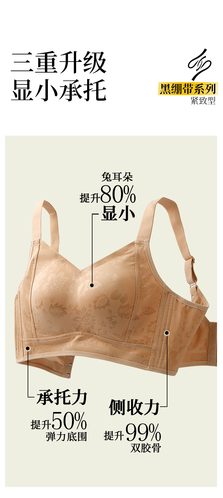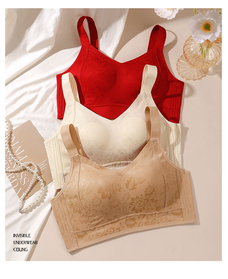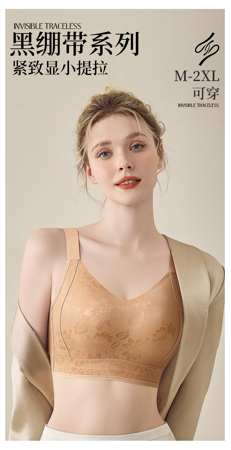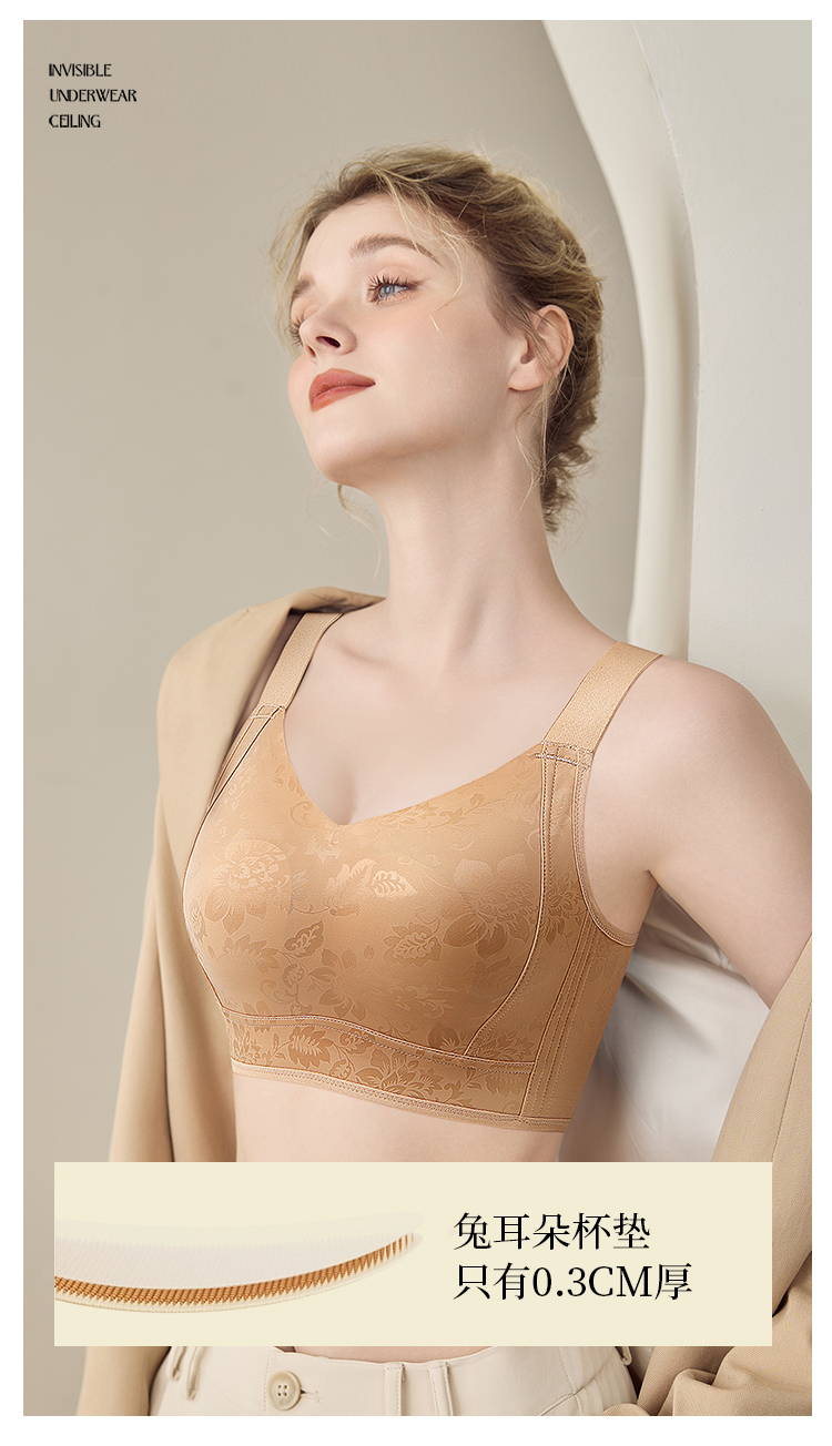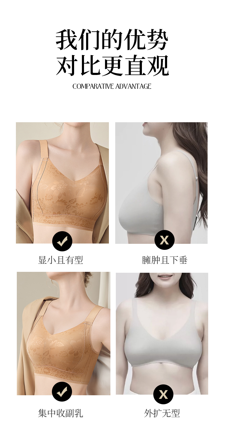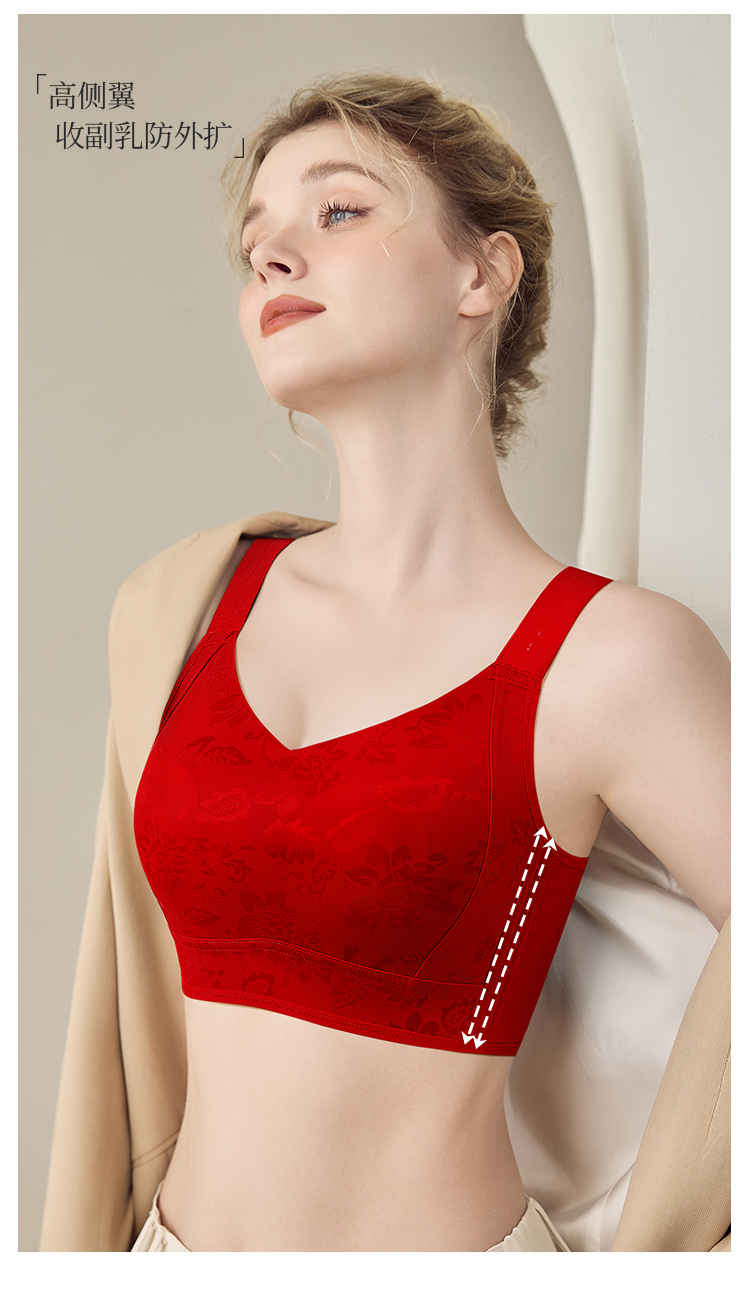 D1-【B-E杯】轻奢缎面 反重力提拉】大胸显小红色内衣聚拢防下垂收副乳文胸 茉香乌龙