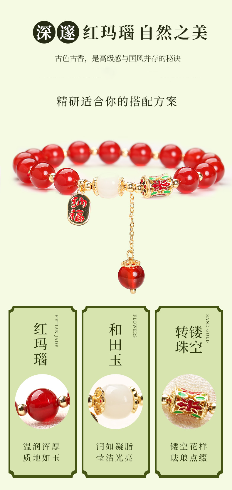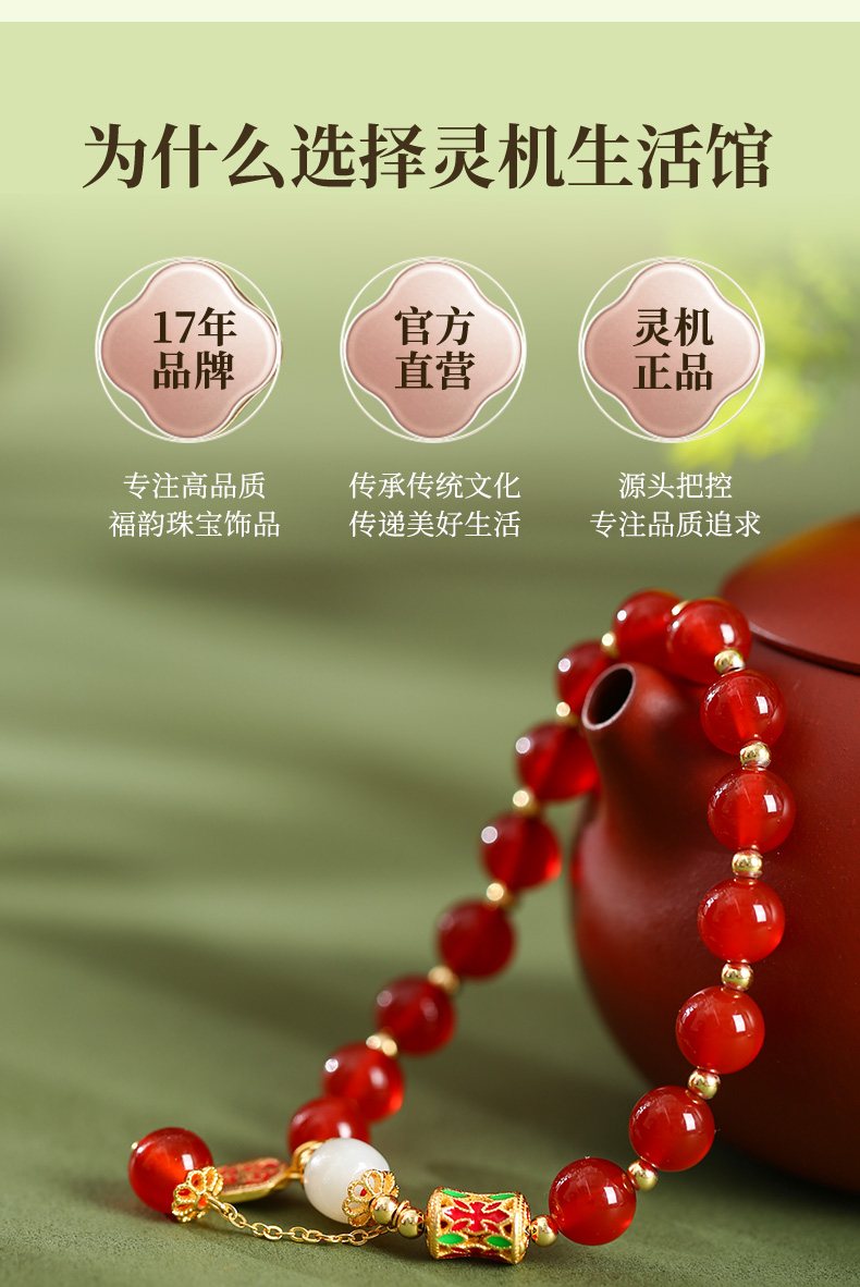 灵机吉品 红玛瑙手链