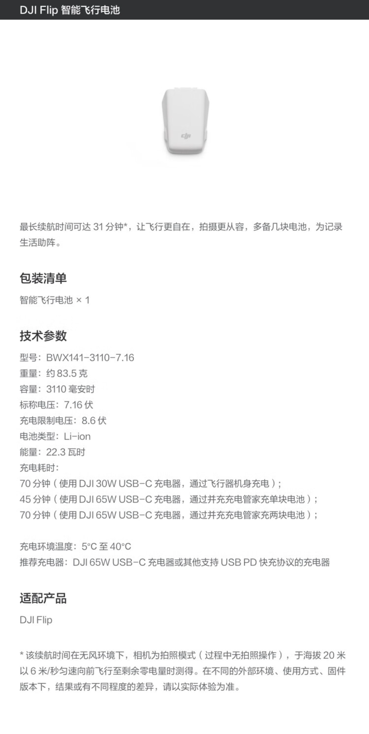 DJI Flip无人机 智能飞行电池 DJI Flip无人机配件 大疆无人机配件