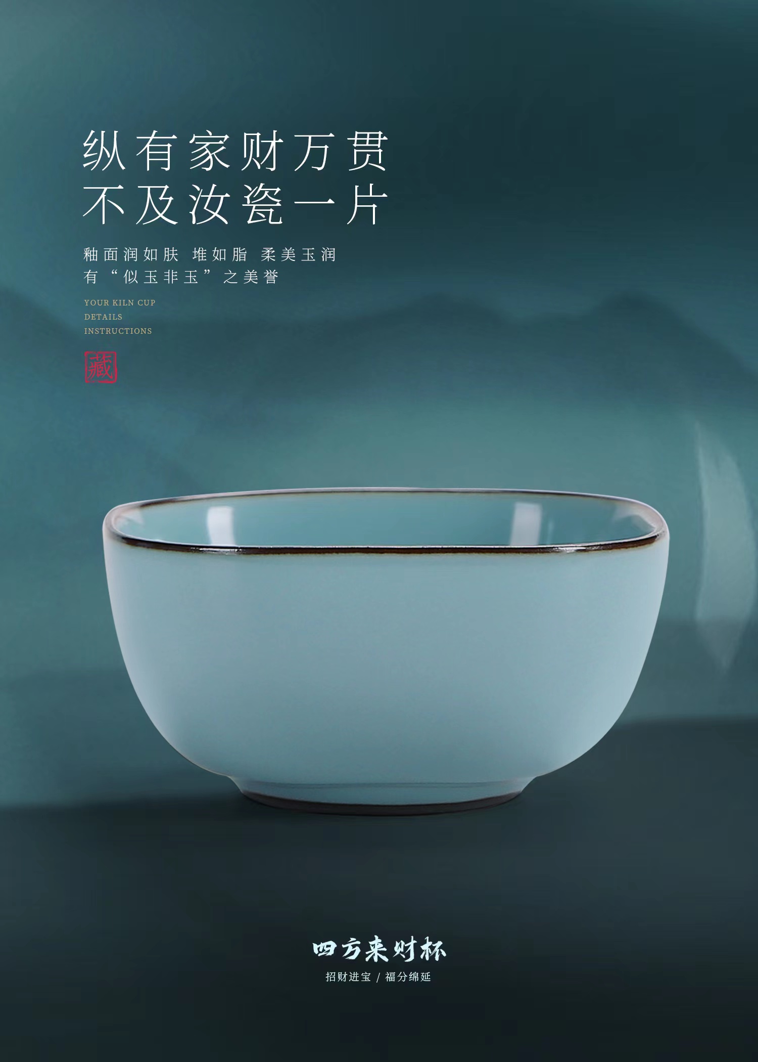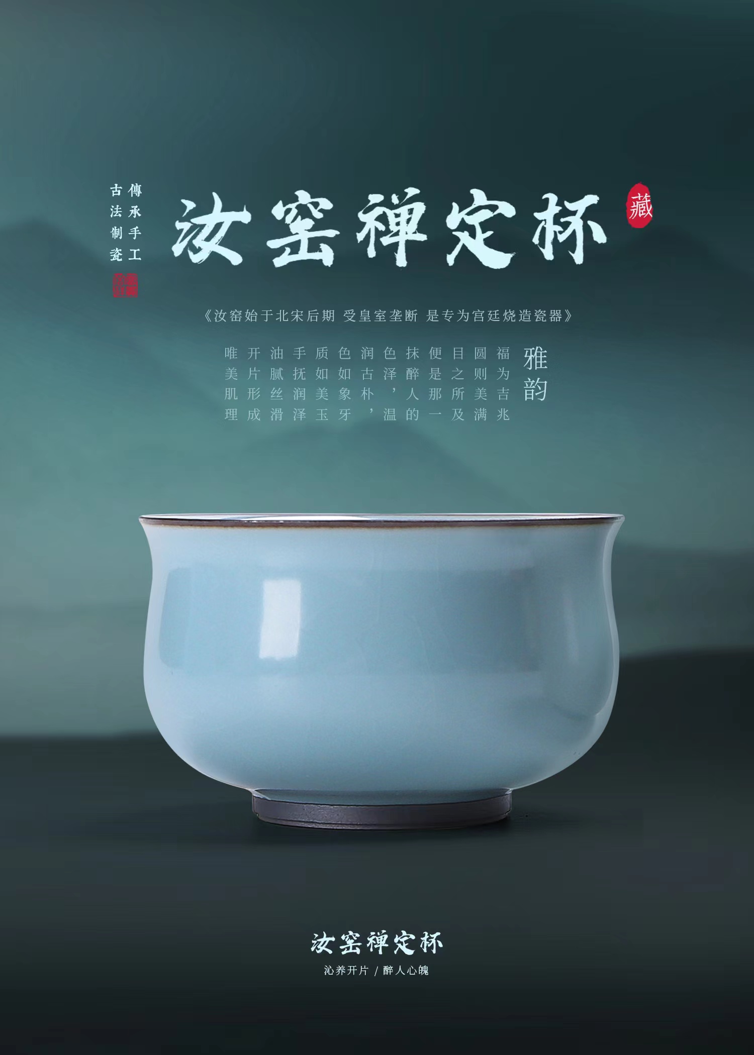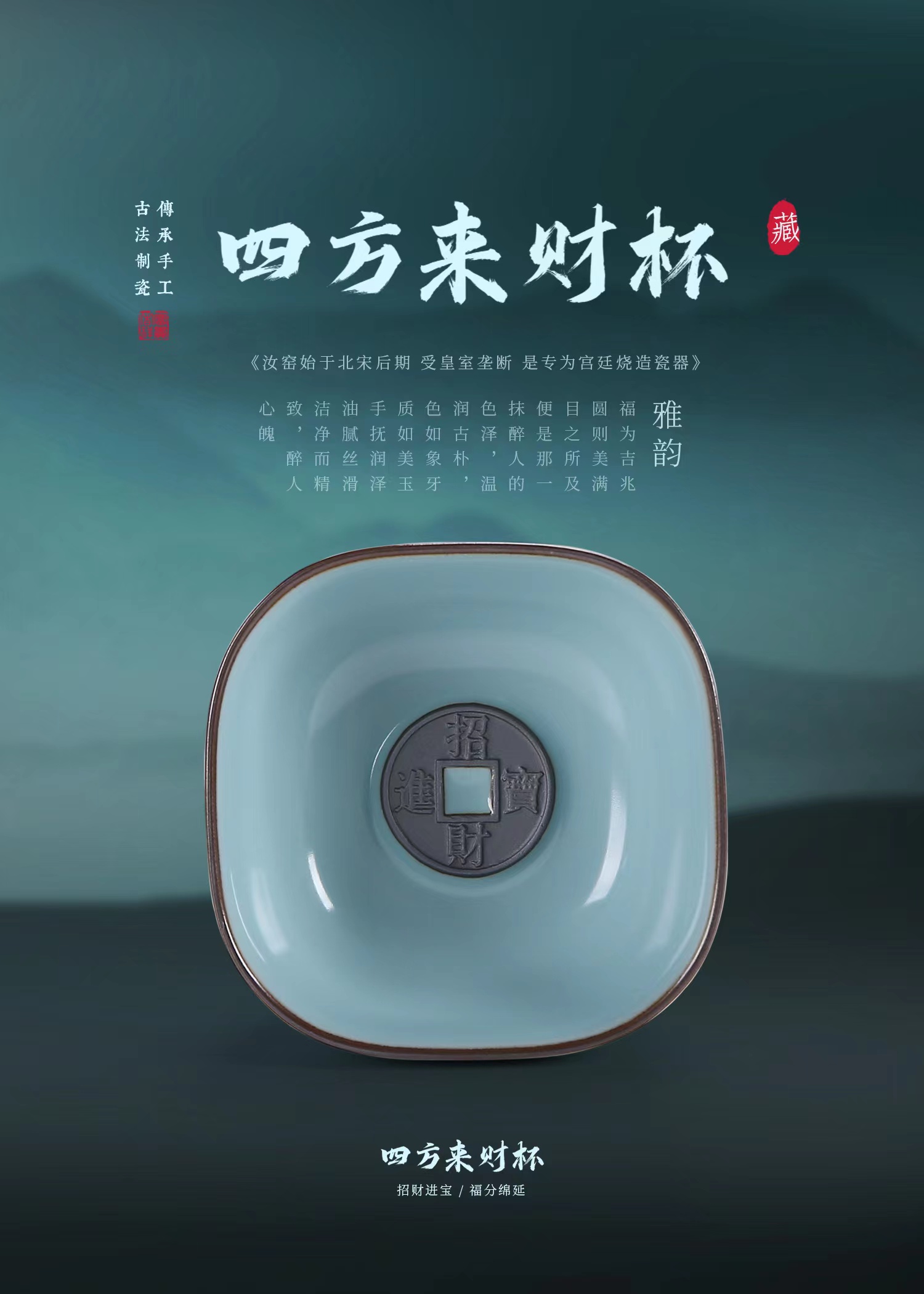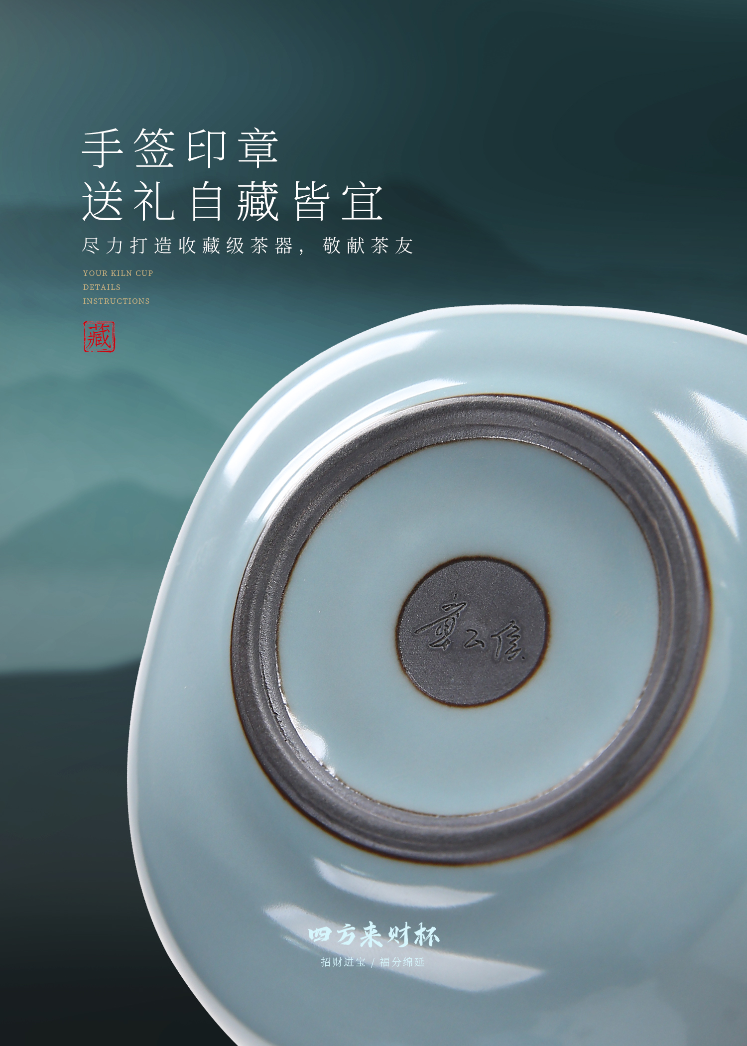 【传承手工 古法制瓷】汝窑四方来财 天青主人杯、月白主人杯,作者签章 品质保证,珍藏品鉴 送礼臻品