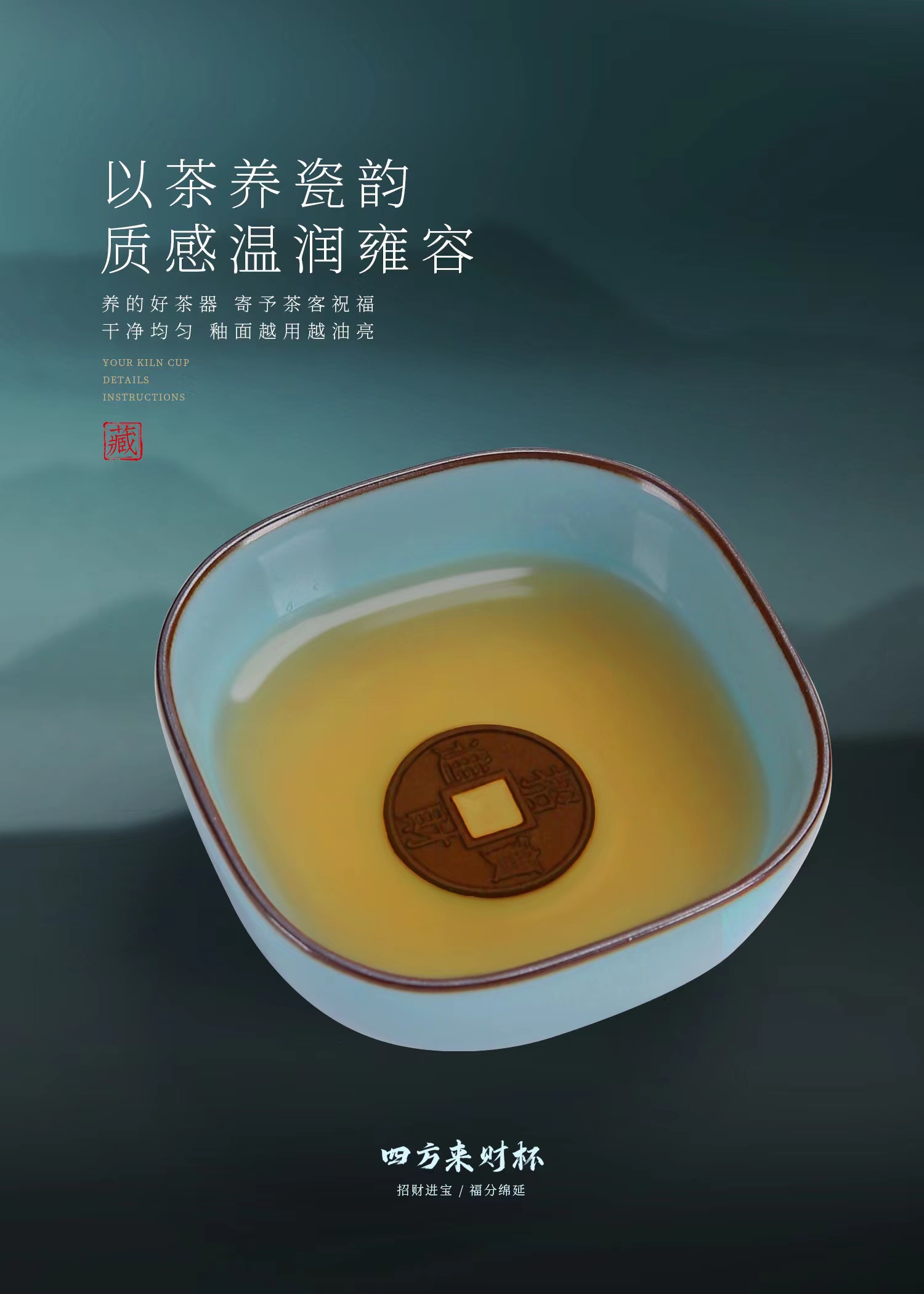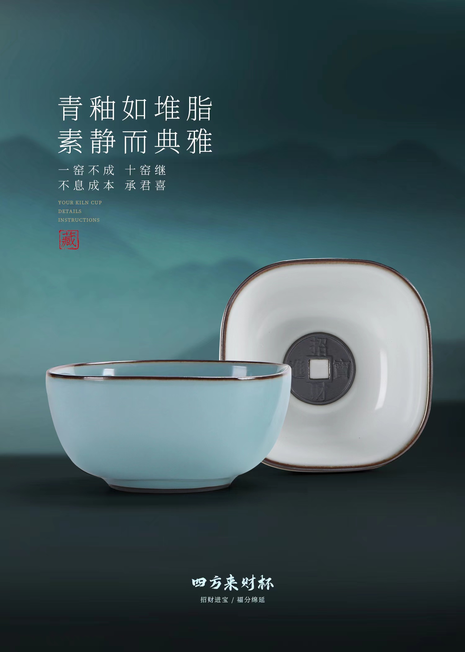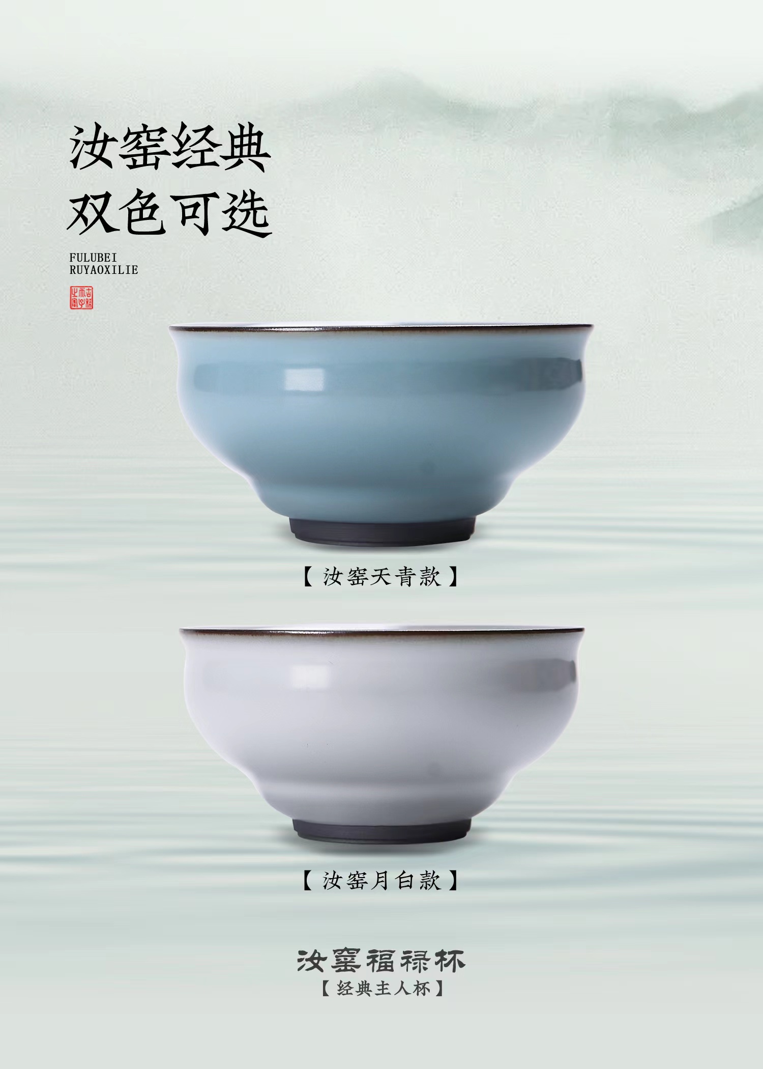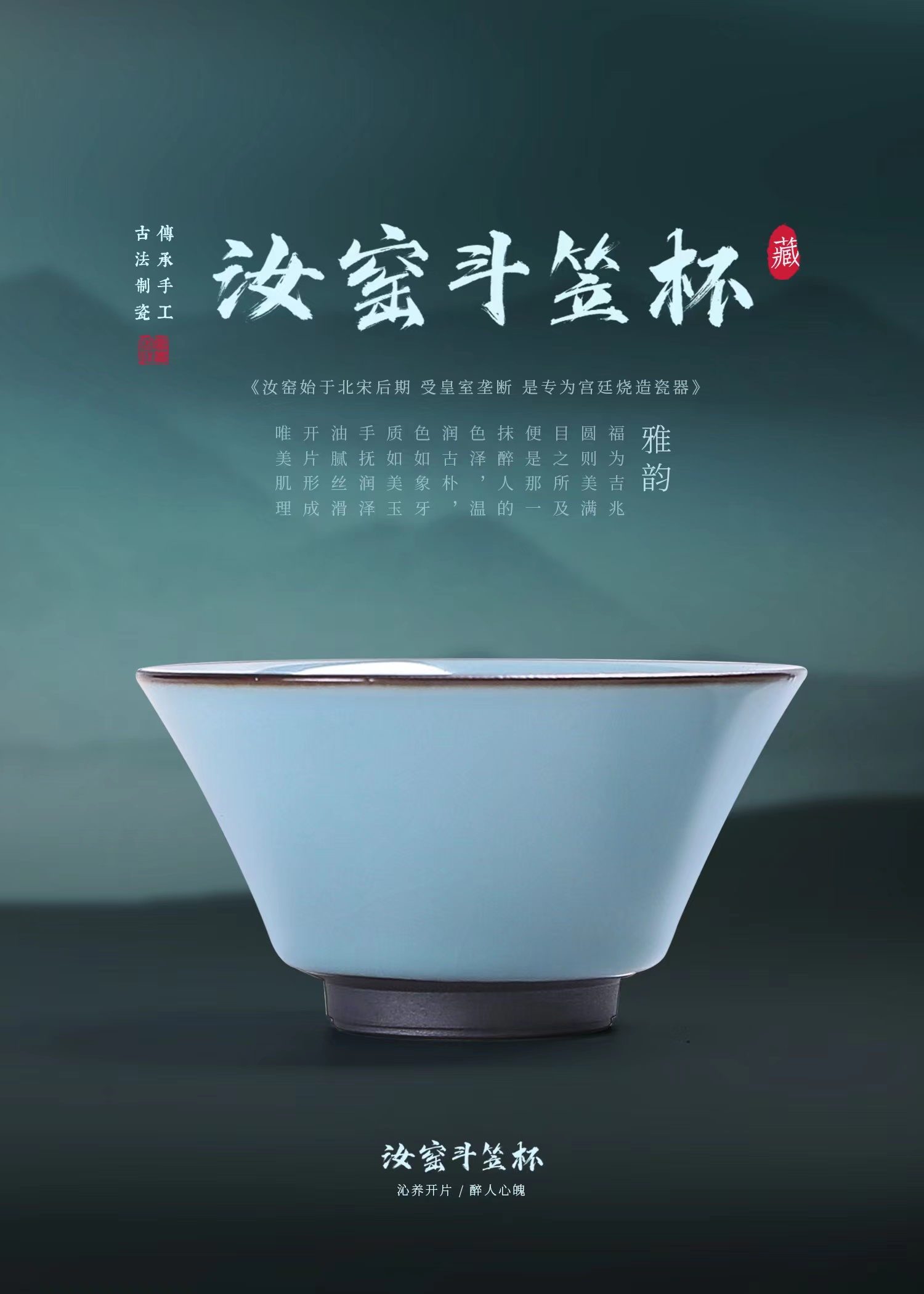 【传承手工 古法制瓷】汝窑四方来财 天青主人杯、月白主人杯,作者签章 品质保证,珍藏品鉴 送礼臻品