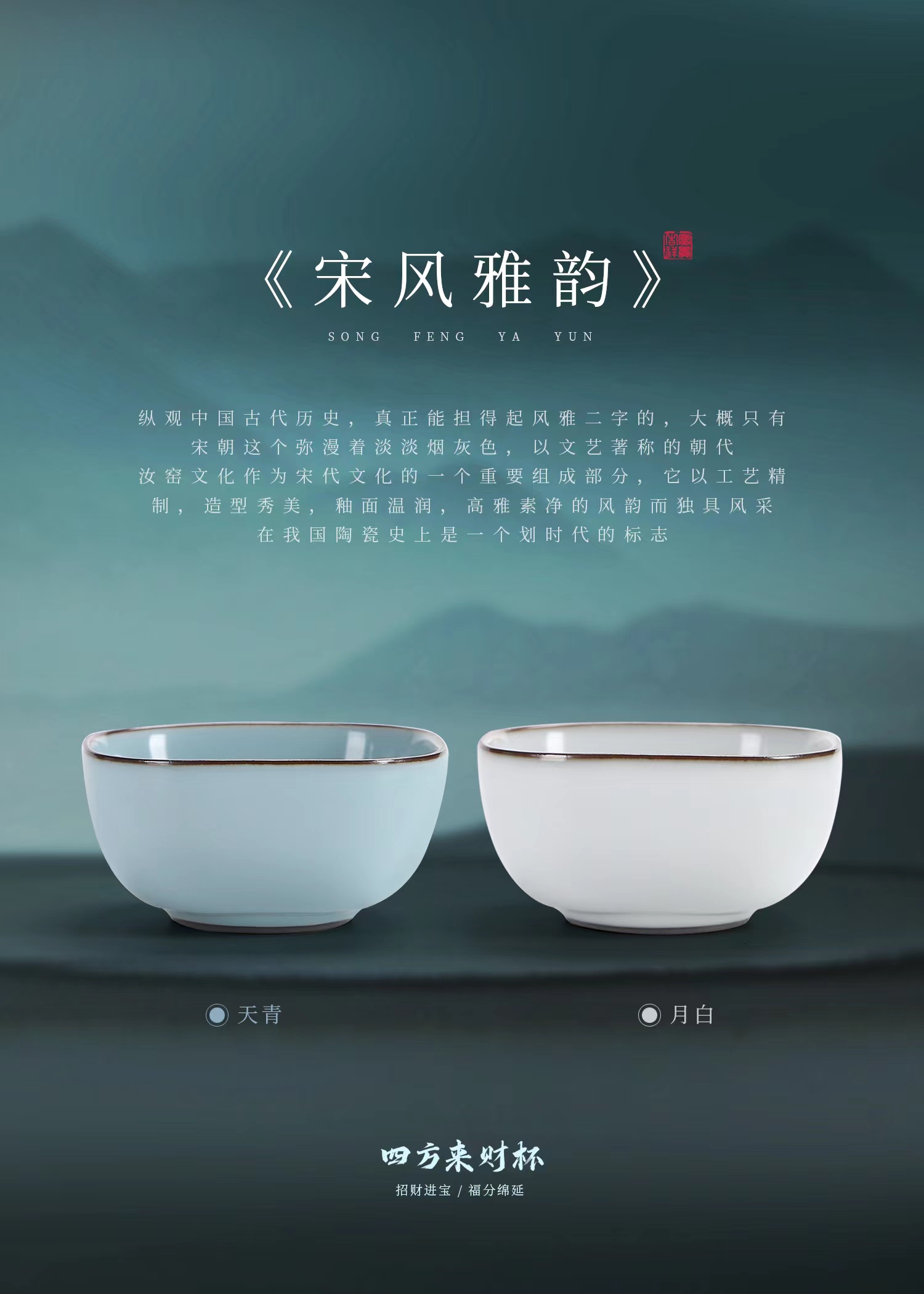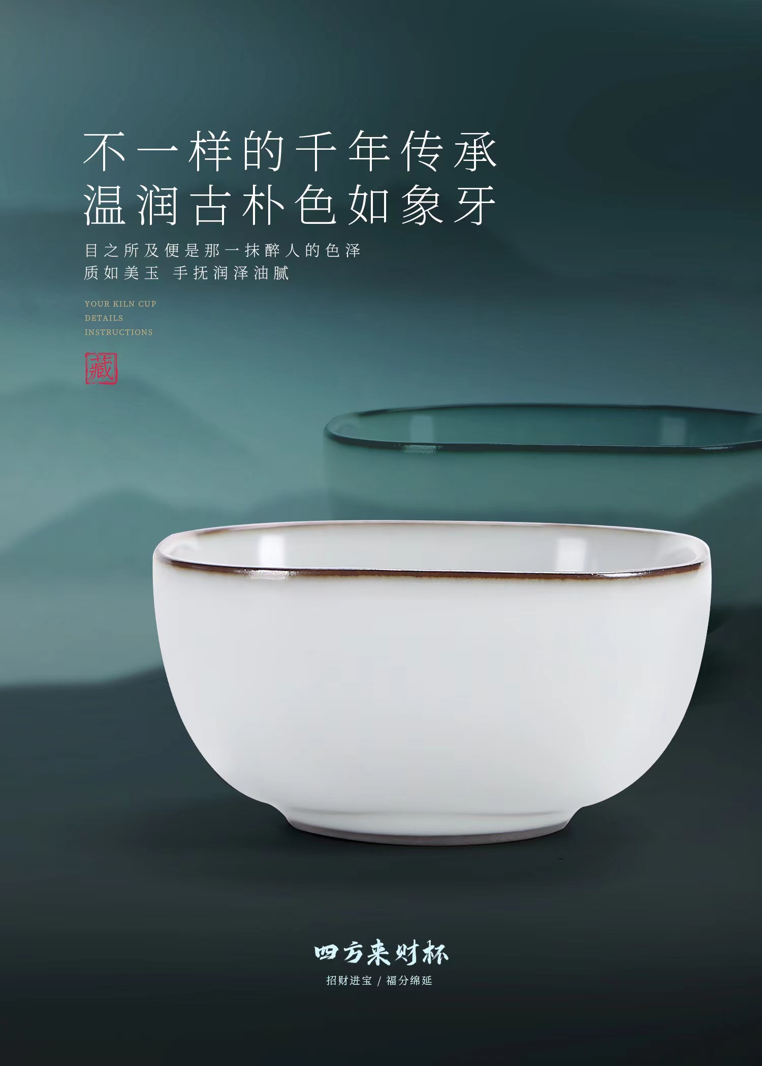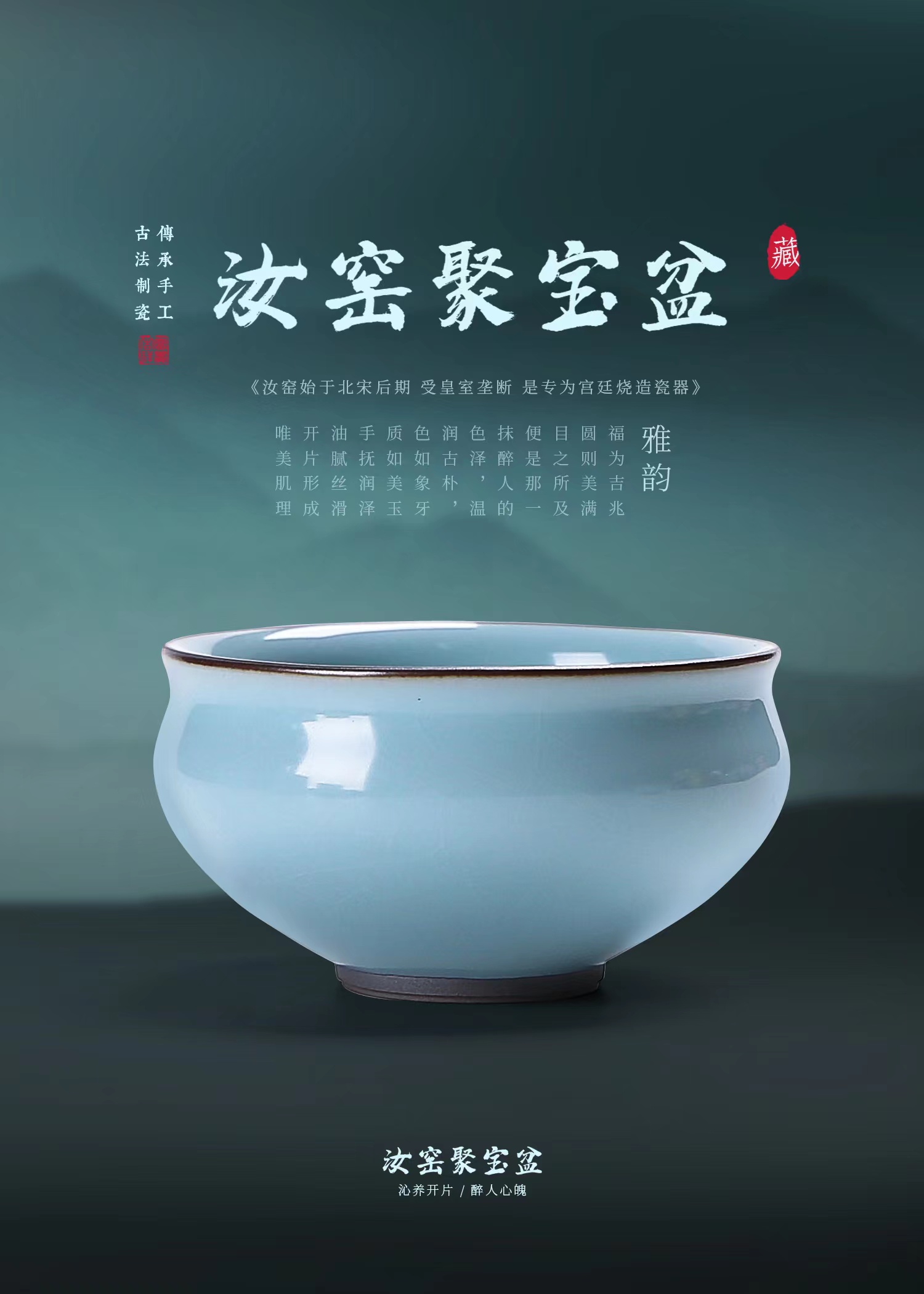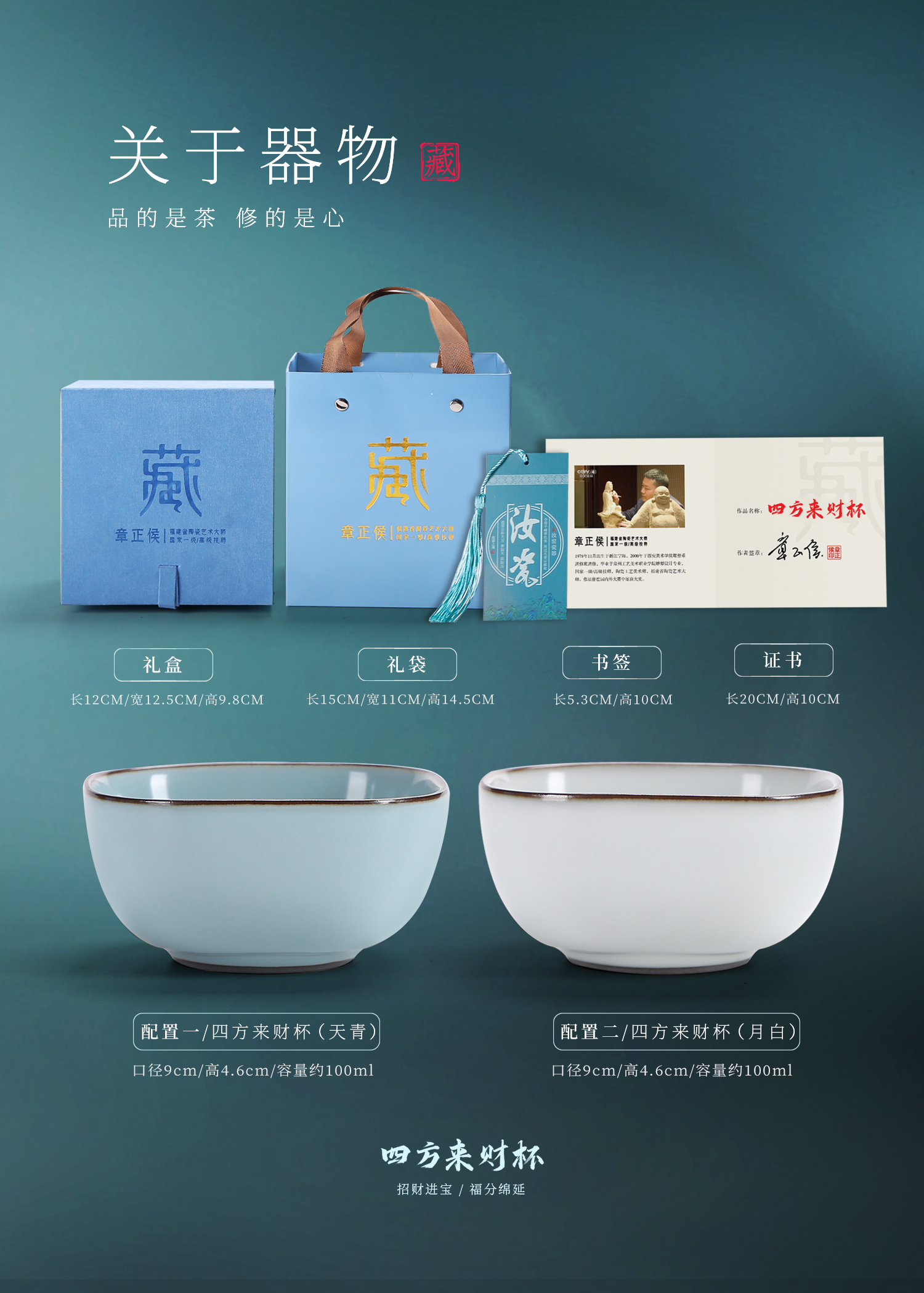 【传承手工 古法制瓷】汝窑四方来财 天青主人杯、月白主人杯,作者签章 品质保证,珍藏品鉴 送礼臻品