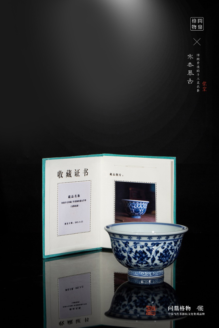问鼎辛丑珍藏青花缠枝莲压手杯(鸳鸯纹 双狮戏球)(缺货)