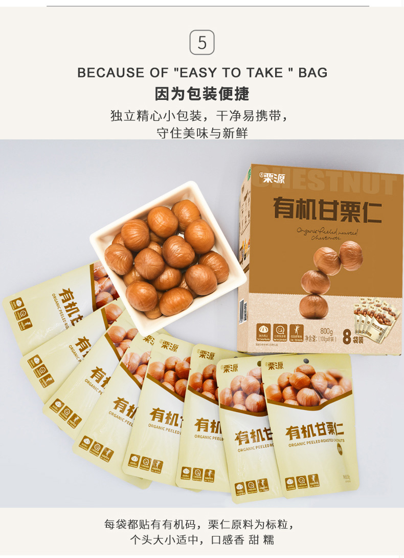 栗源 有机甘栗仁 盒装(100g×8袋/盒) 全国配送 (偏远地区除外)