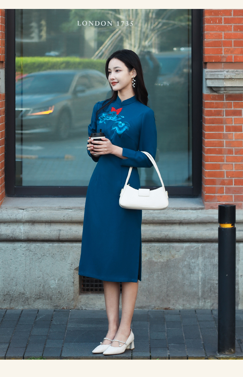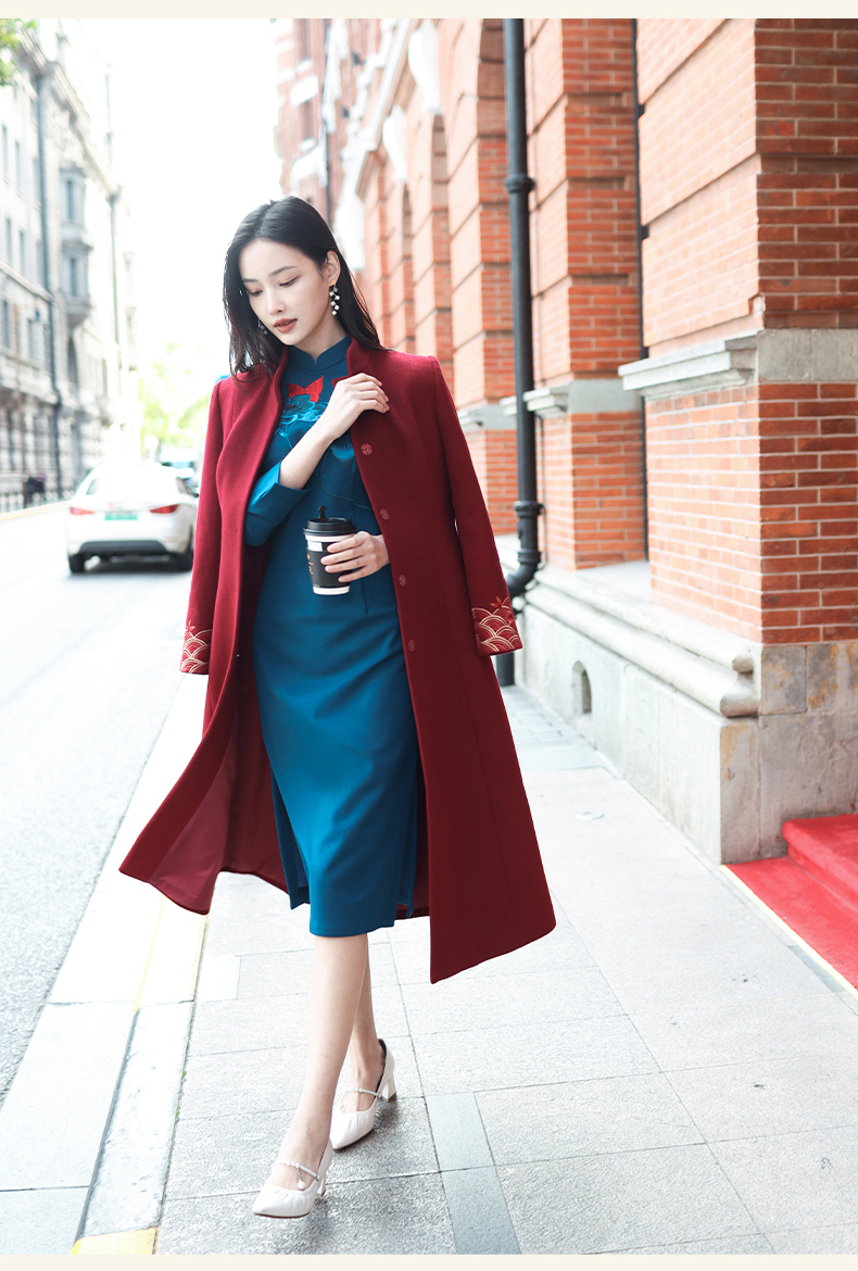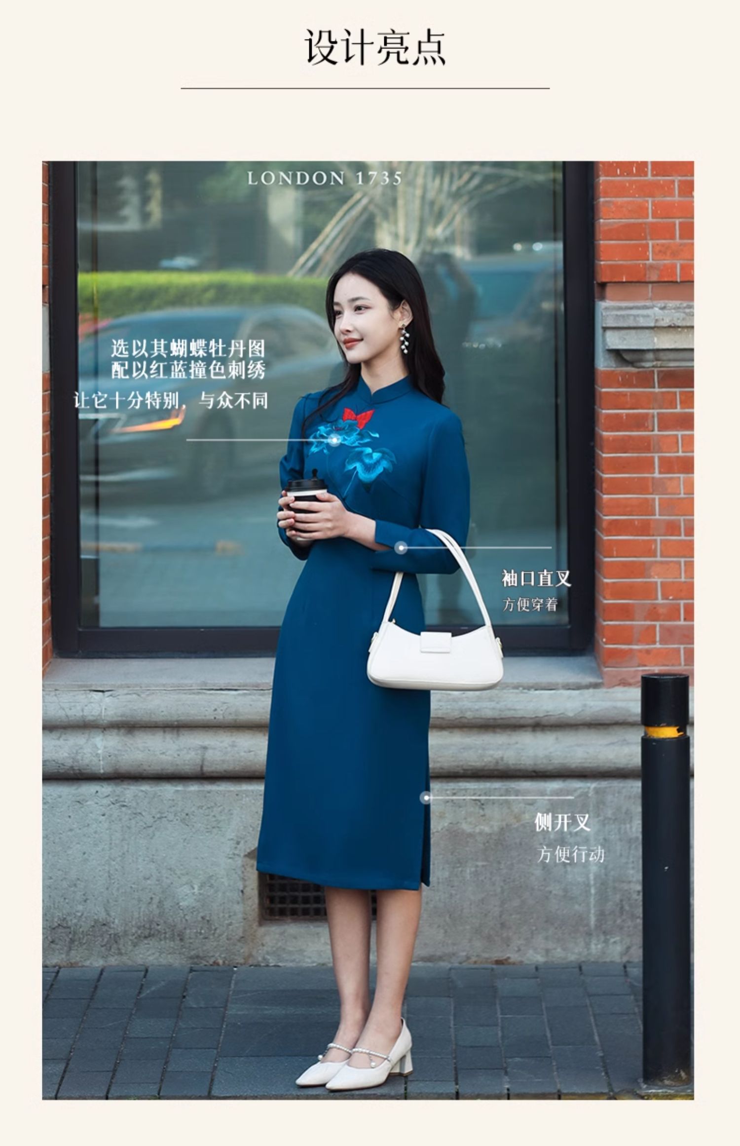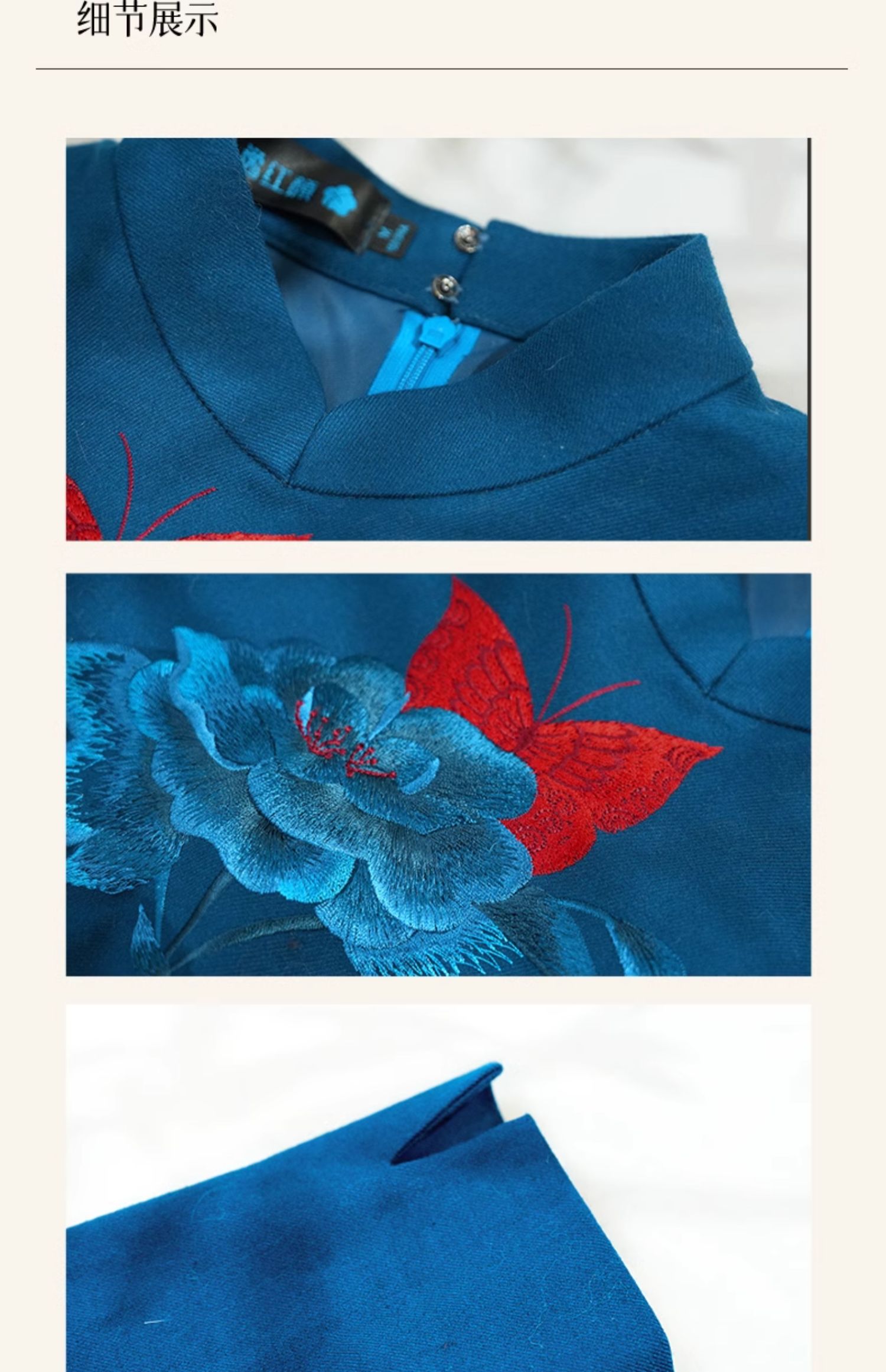 上海逸红颜丹澜2025年早春新款刺绣羊毛材质新中式改良国风旗袍女