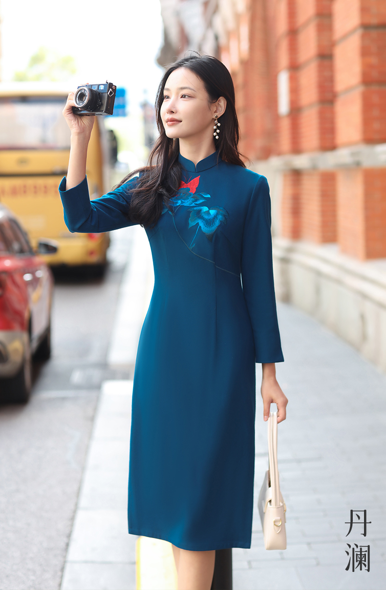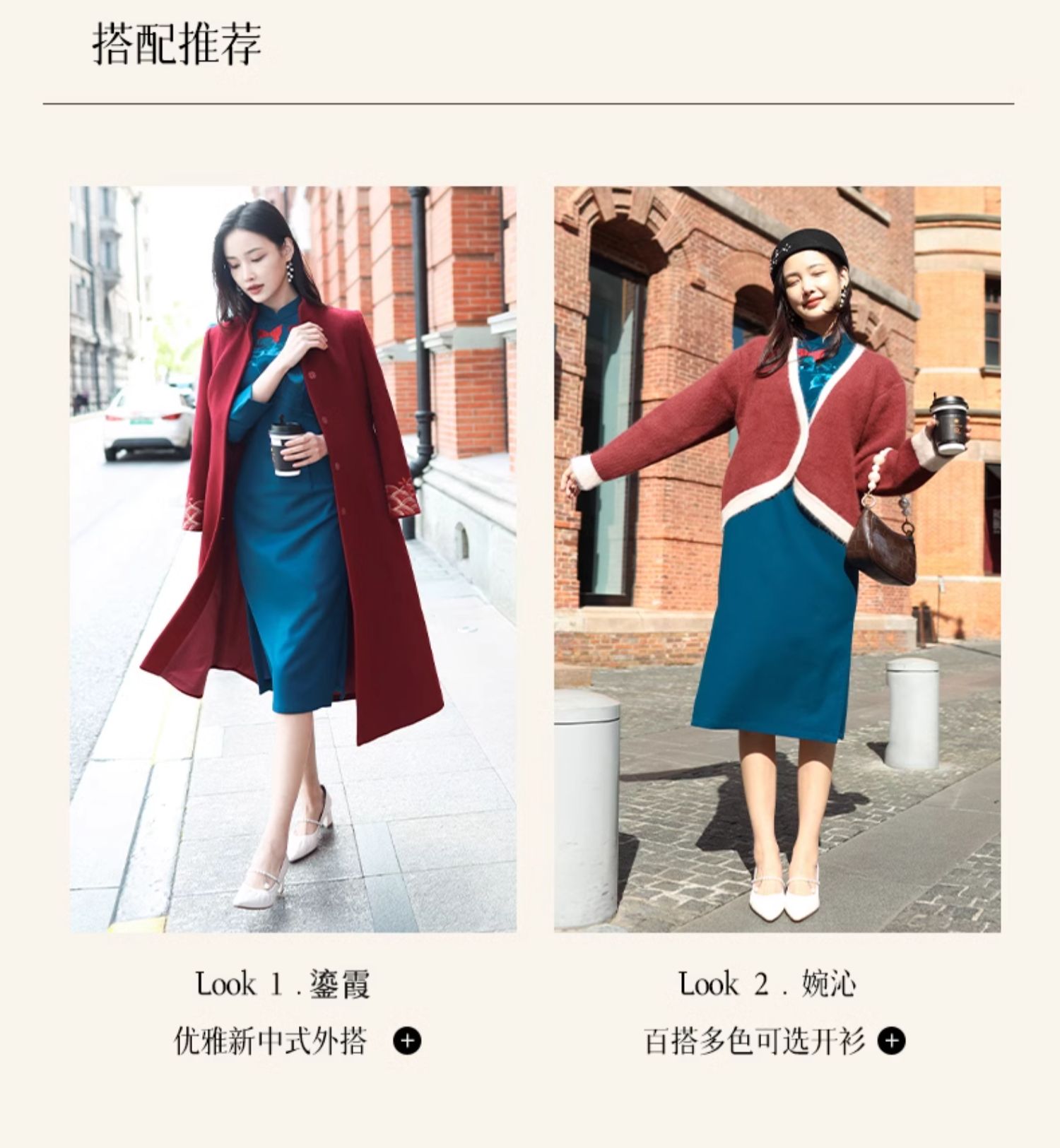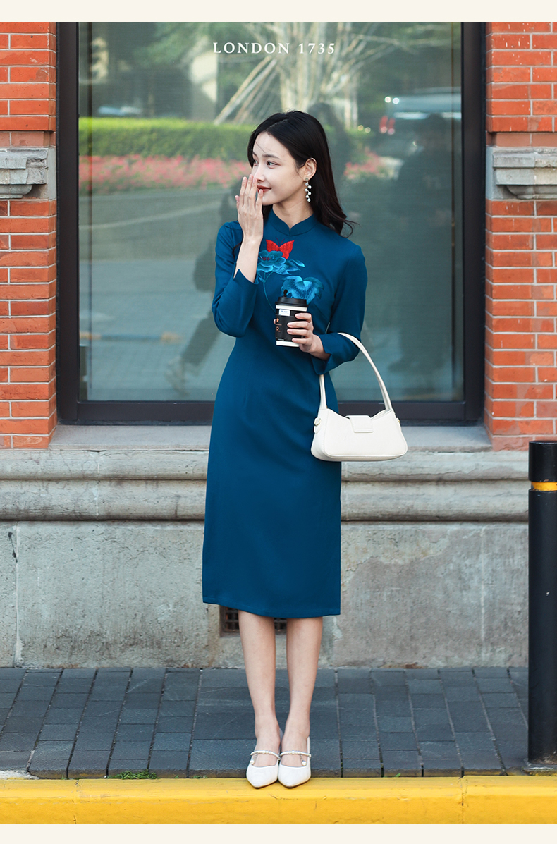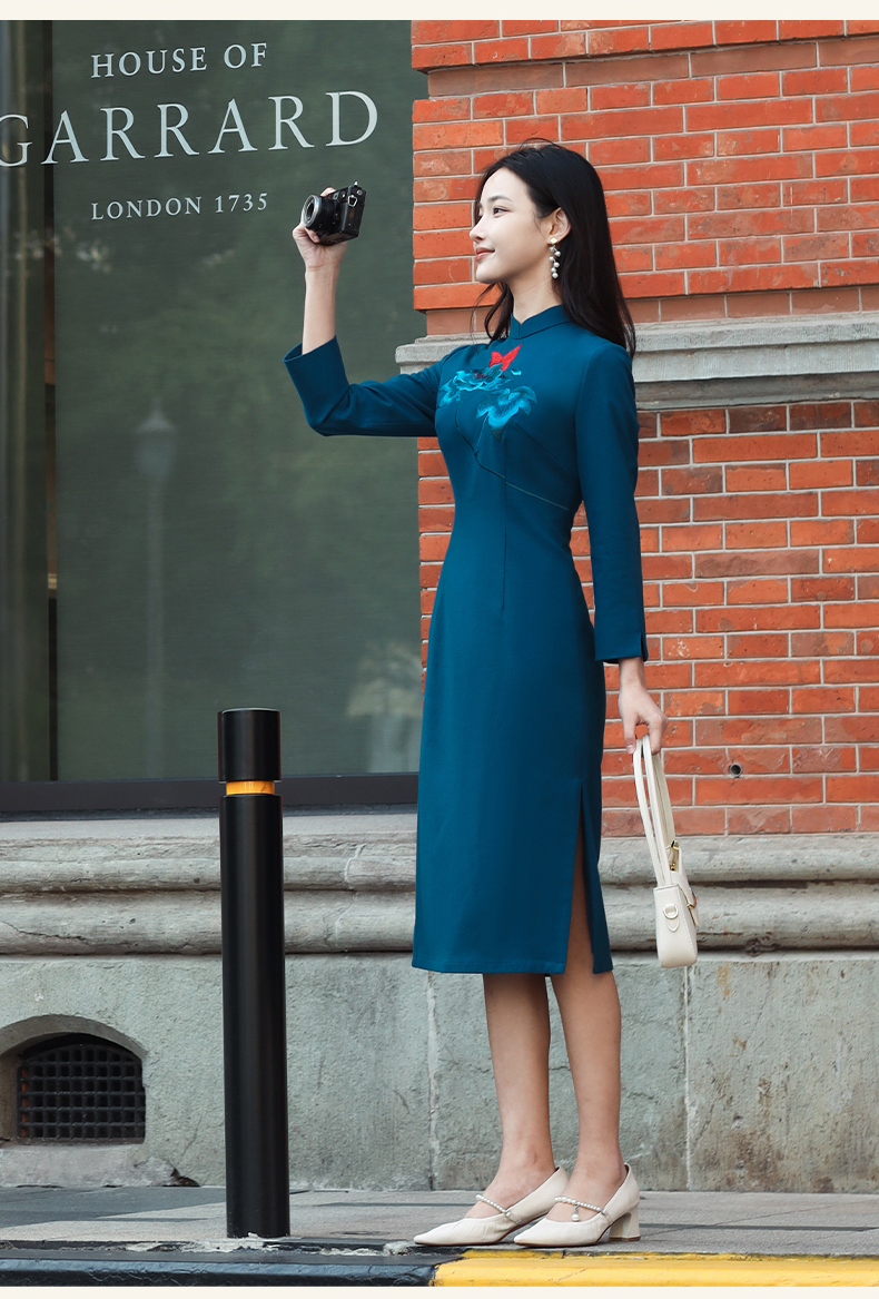 上海逸红颜丹澜2025年早春新款刺绣羊毛材质新中式改良国风旗袍女