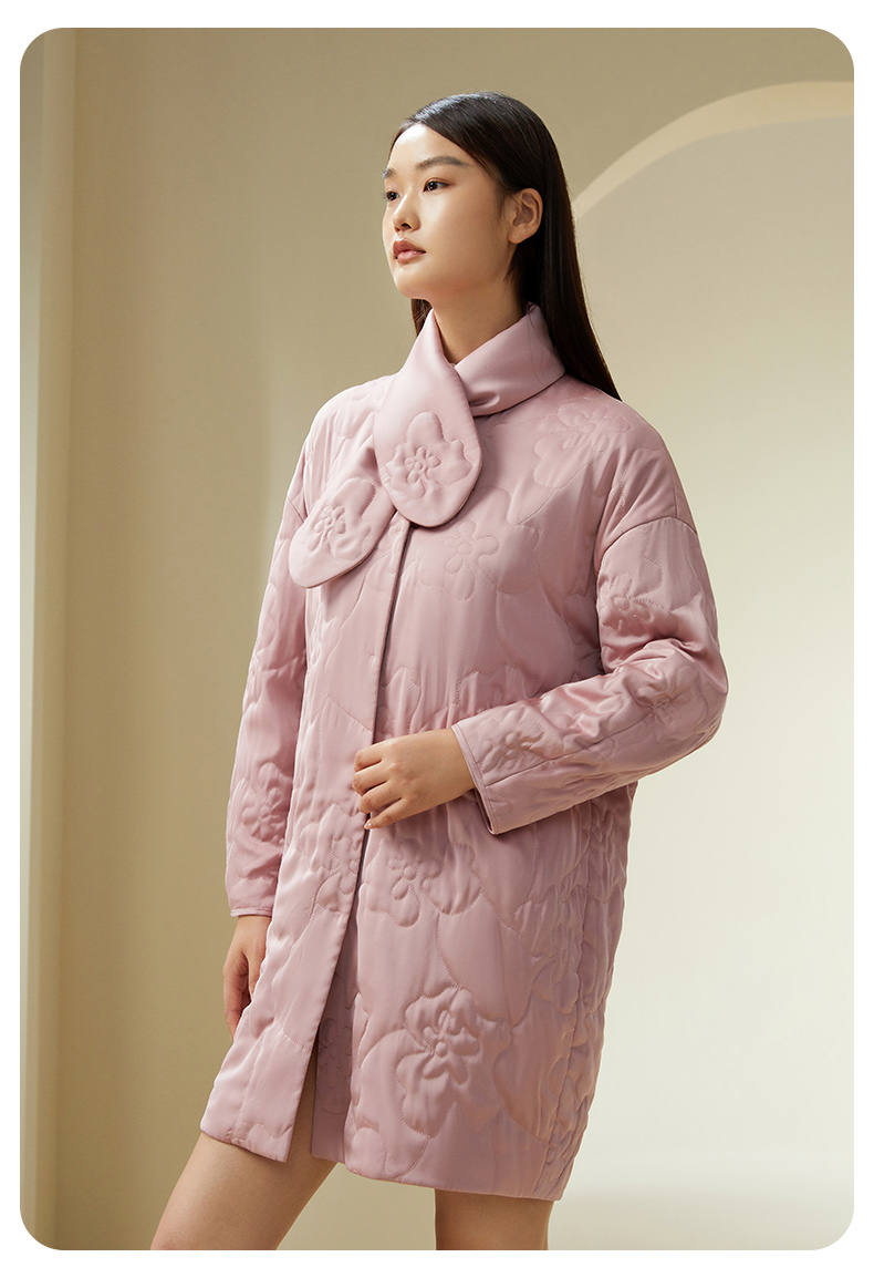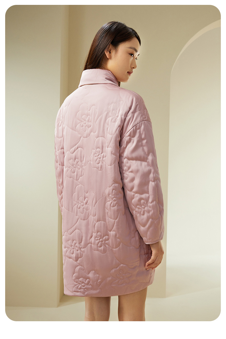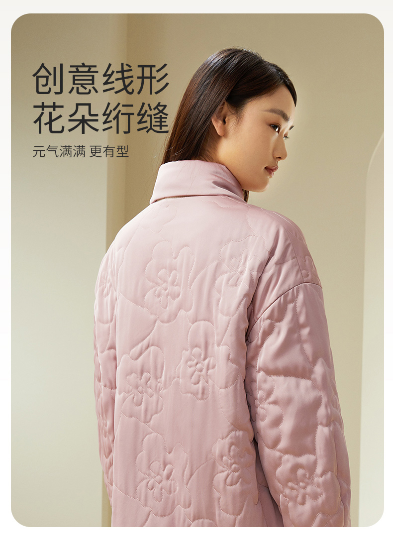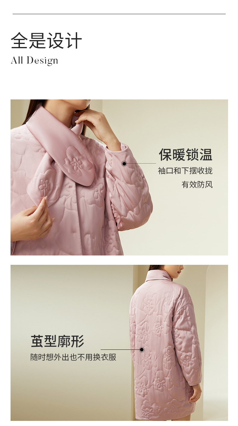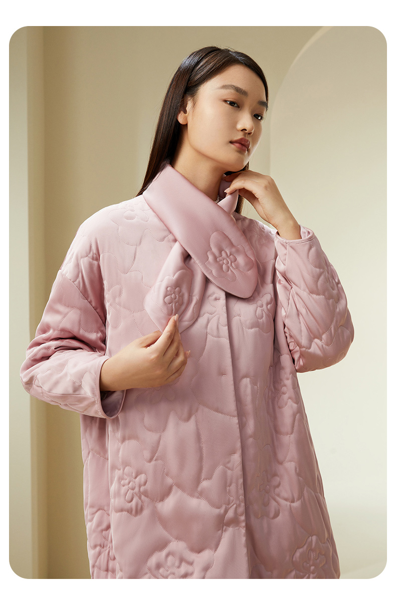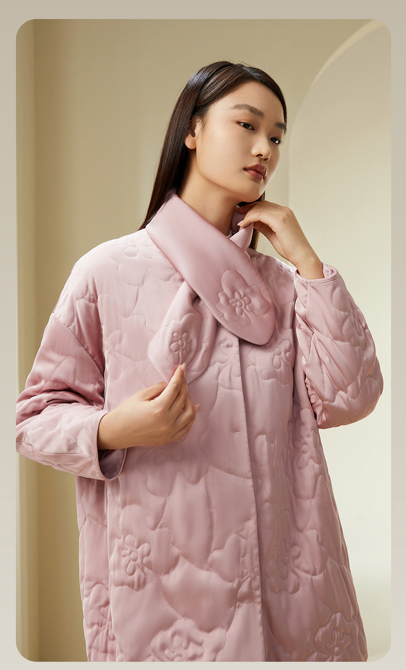 金三塔桑蚕丝夹棉睡袍女士秋冬保暖柔软带围脖加厚款可外穿家居服 YSFDD102