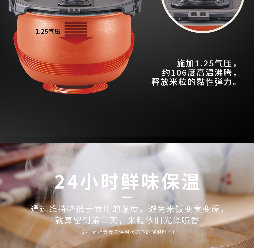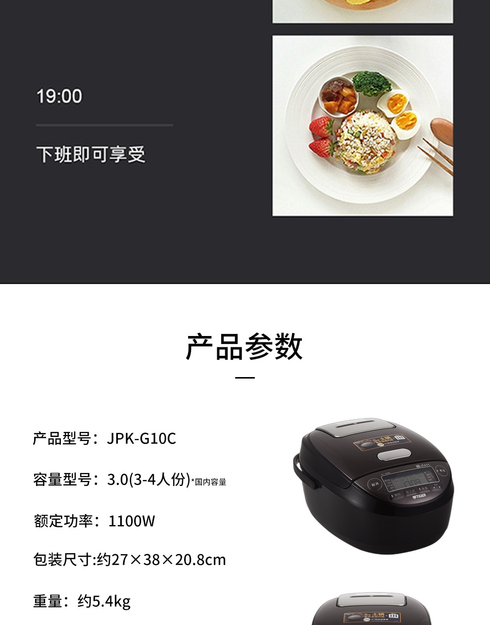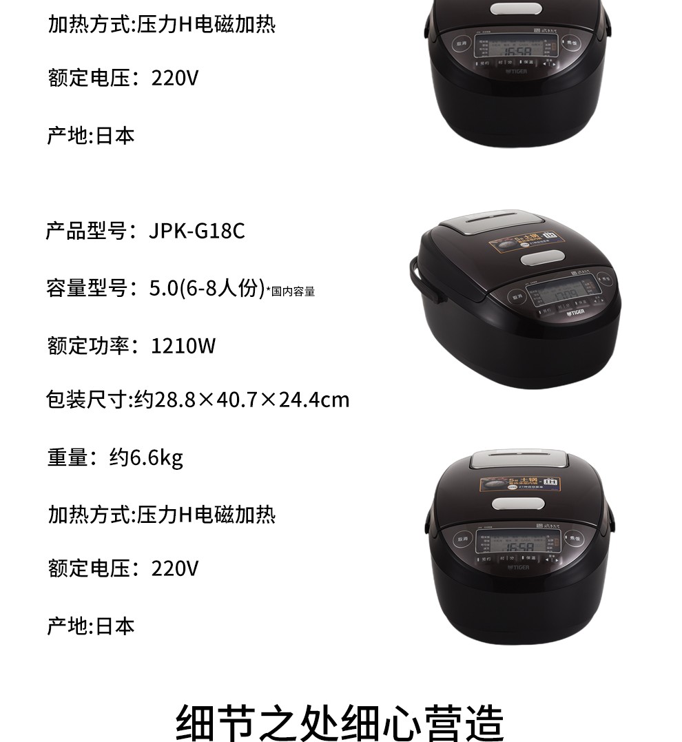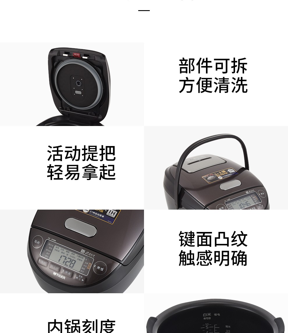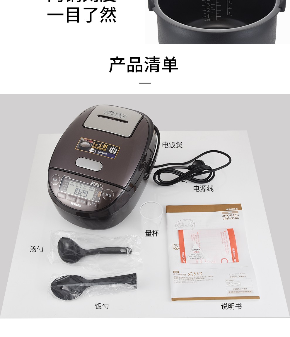 【6F】虎牌(Tiger) 原装进口压力IH电磁加热智能土锅涂层电饭煲JPK-G10C/G18C 3L