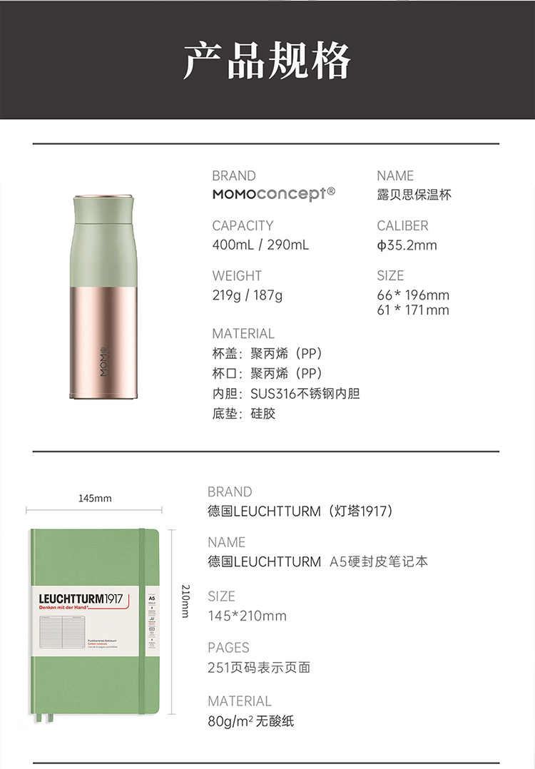 MOMO露贝思保温杯+灯塔笔记本礼盒
