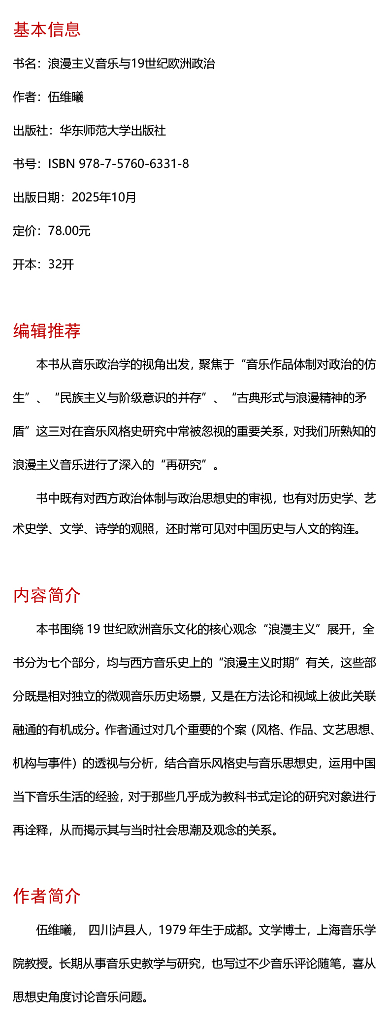 浪漫主义音乐与19世纪欧洲政治 精装 伍维曦 音乐评论文集 音乐政治学