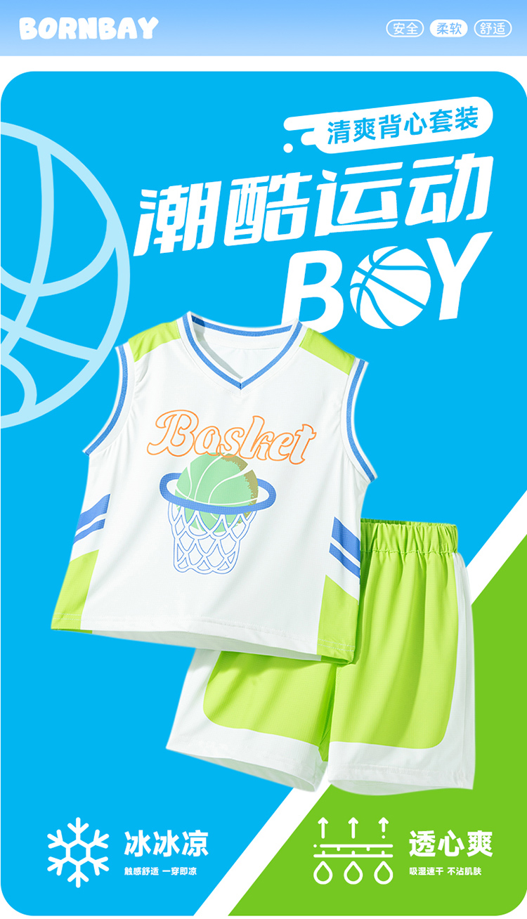 贝贝怡童装男童篮球背心套装2025夏季新款男孩速干衣短裤两件套ZB2ET076