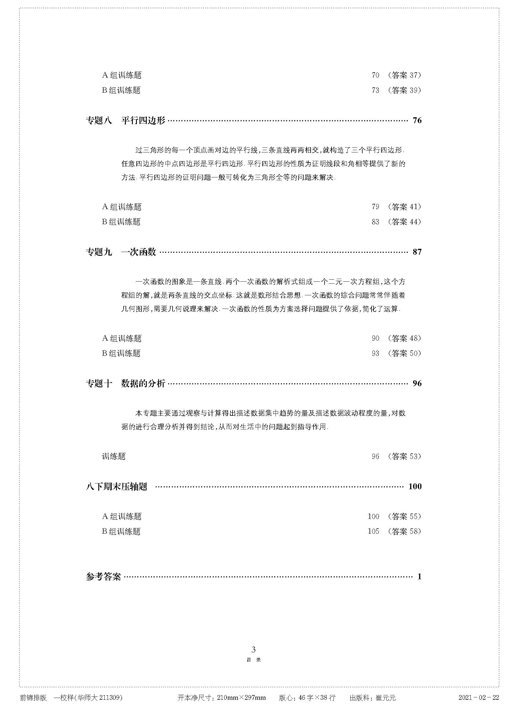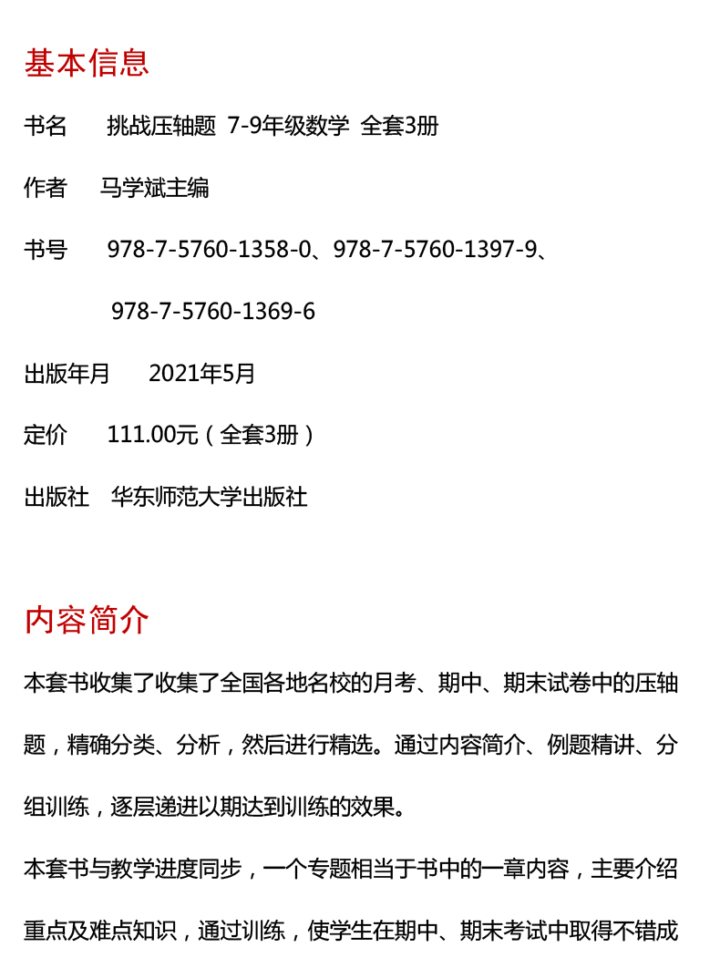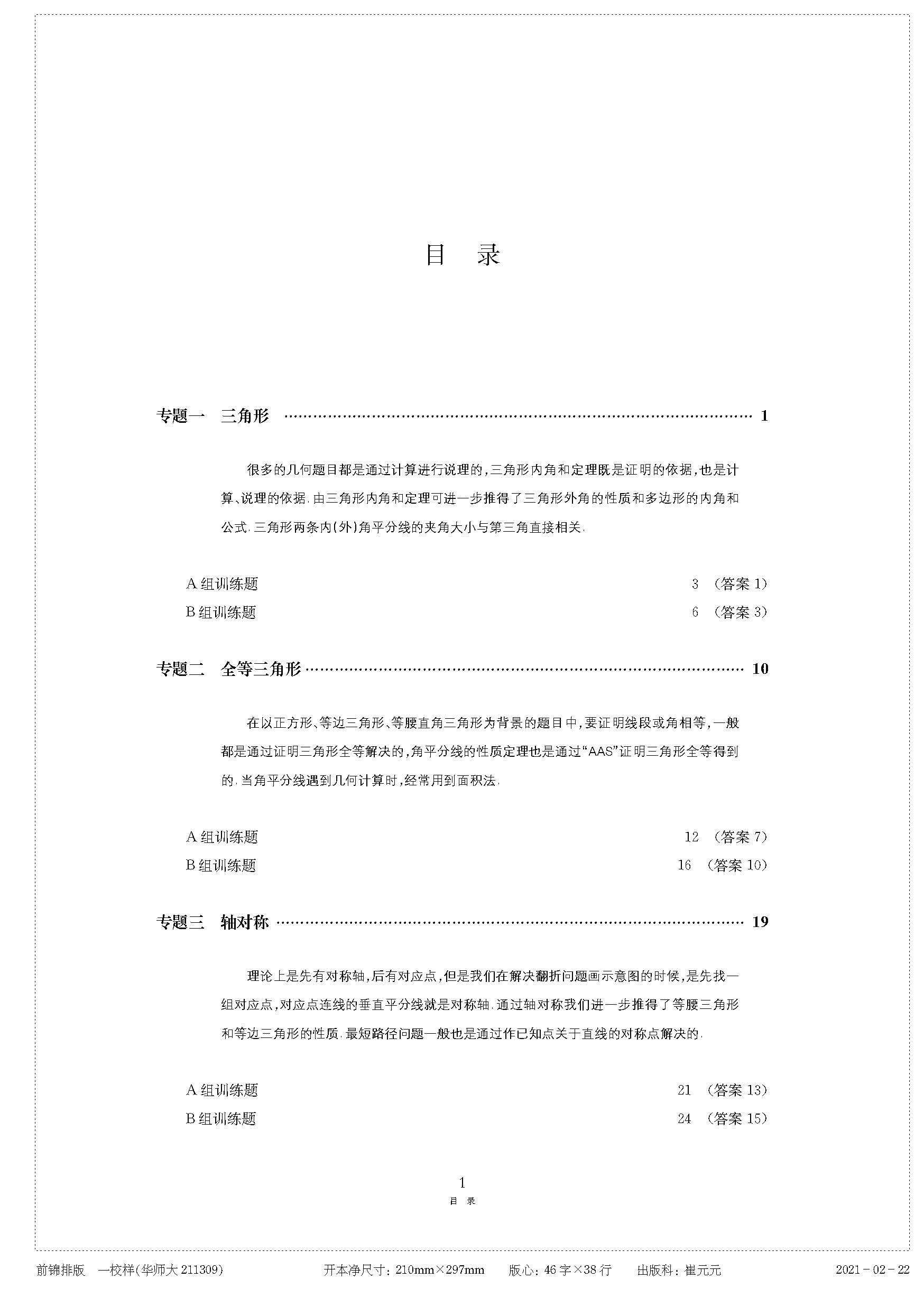 《挑战压轴题 七年级》目录《挑战压轴题 八年级》目录